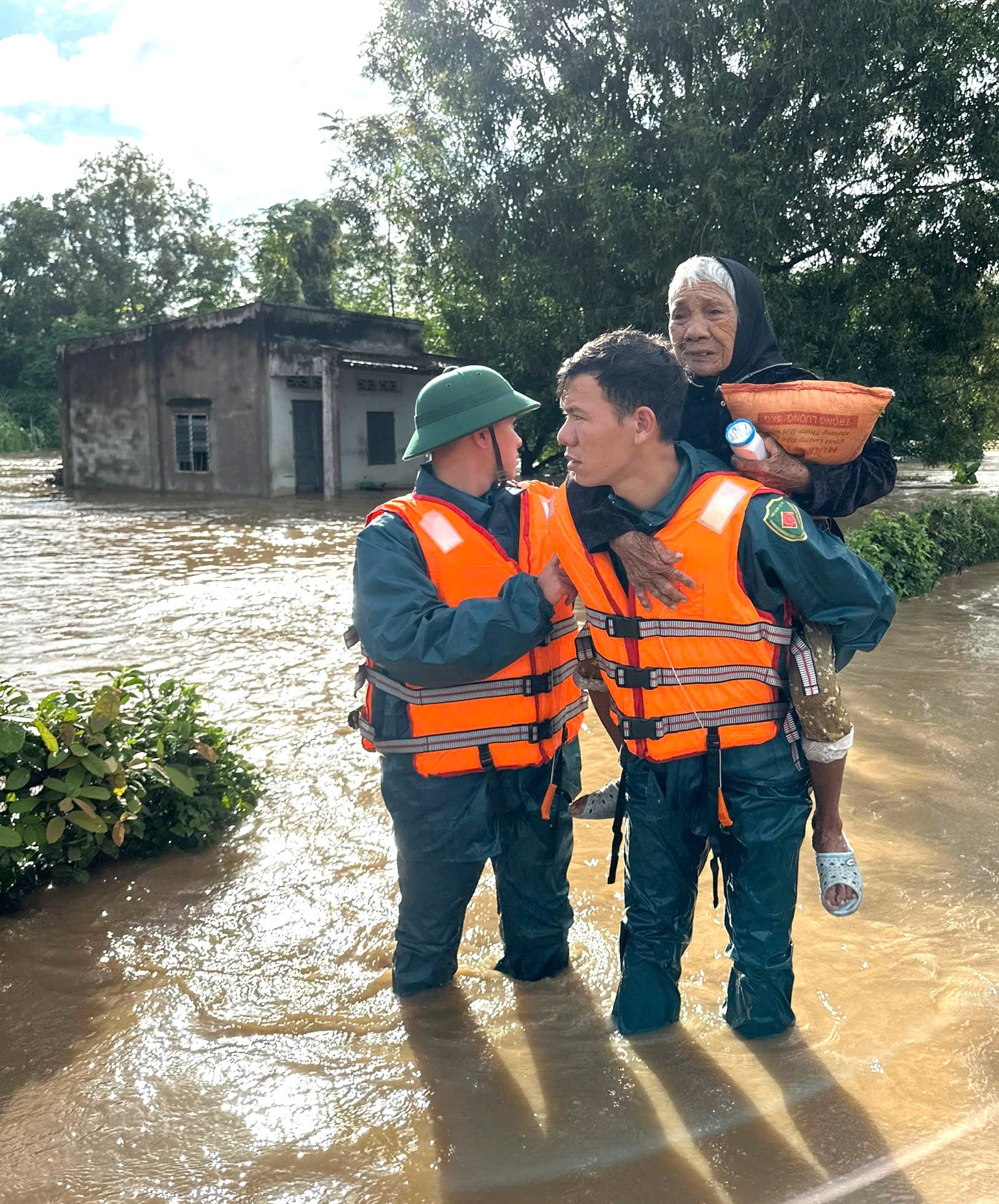 Nhiều gia đình, nhất là các cụ già và trẻ nhỏ, rơi vào tình cảnh không thể tự thoát ra ngoài. Những người lính phải men theo dòng nước, gõ cửa từng nhà, dìu từng người vượt qua dòng chảy. Hàng trăm chiến sĩ quần áo ướt sũng, chân ngập trong bùn, vẫn kiên trì cõng cụ già trên lưng, che ôm từng túi đồ – những tài sản ít ỏi nhưng quý giá của người dân. Hình ảnh cho thấy tinh thần vừa kiên quyết, trách nhiệm, đầy nhân văn của người lính. Không chỉ cứu người, bộ đội còn giúp dân di chuyển máy móc, xe cộ, vật dụng quan trọng ra khỏi vùng nguy hiểm.