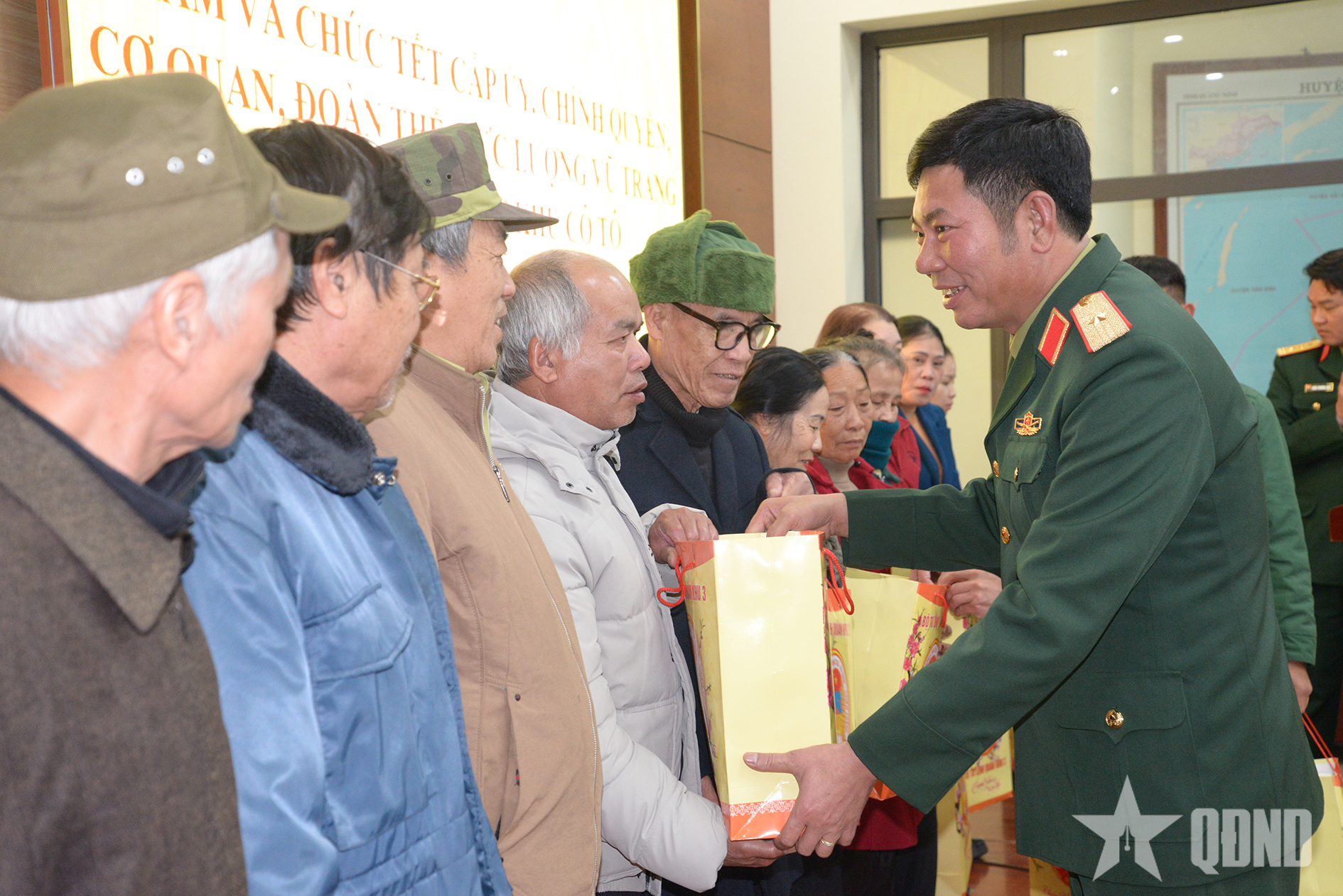 Nhân dịp này, đoàn công tác của Quân khu 3 đã đến thăm, tặng quà và chúc Tết cấp ủy, chính quyền, đoàn thể, LLVT và nhân dân đặc khu Vân Đồn và đặc khu Cô Tô, tỉnh Quảng Ninh. Ảnh: KIM NGỌC
