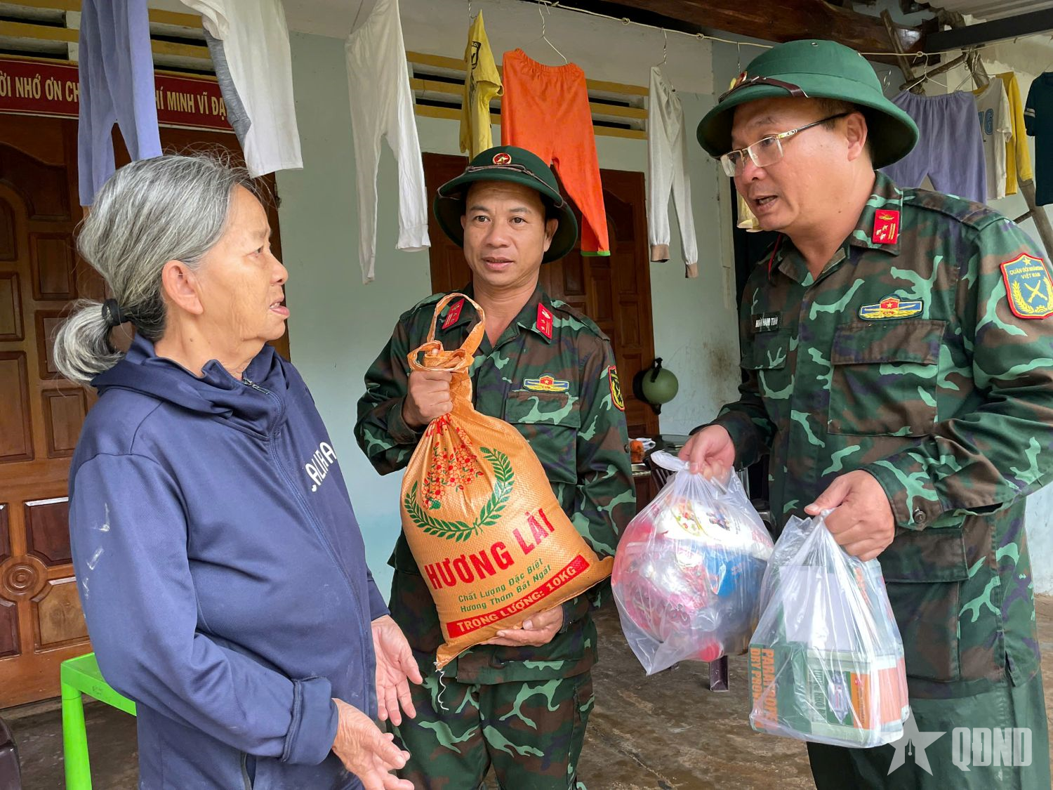 Một hộ dân chia sẻ: “Nhà tôi bị ngập gần hết, lương thực không còn gì. Nhờ các anh bộ đội mang gạo, mắm, mì chính, bánh chưng và lương khô đến kịp thời mà gia đình tôi có cái ăn qua những ngày khó khăn. Cảm ơn bộ đội nhiều lắm, các chú không chỉ cho quà mà còn giúp dọn dẹp, sửa lại mái nhà bị tốc, ấm lòng lắm!”.