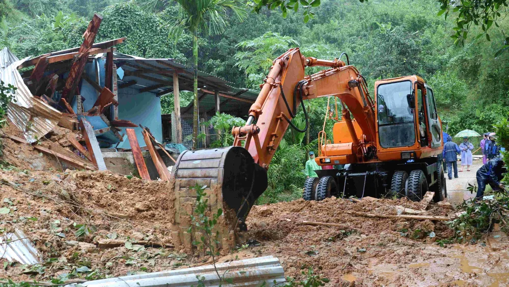 Đất đá sạt lở khiến ngôi nhà của ông Linh bị sập đổ hoàn toàn. Ảnh: QK5