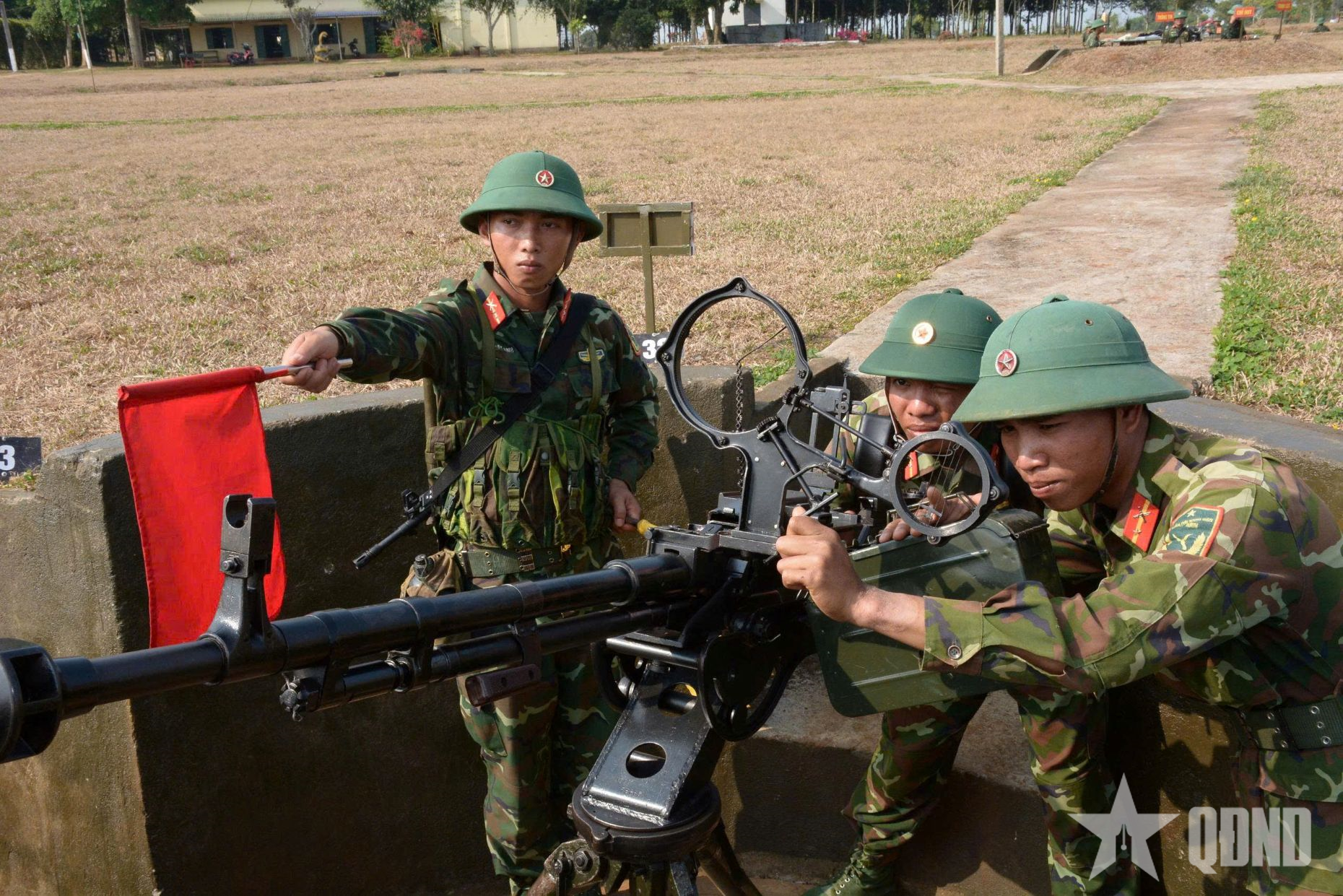 Khẩu đội trưởng chỉ thị mục tiêu cho các xạ thủ.