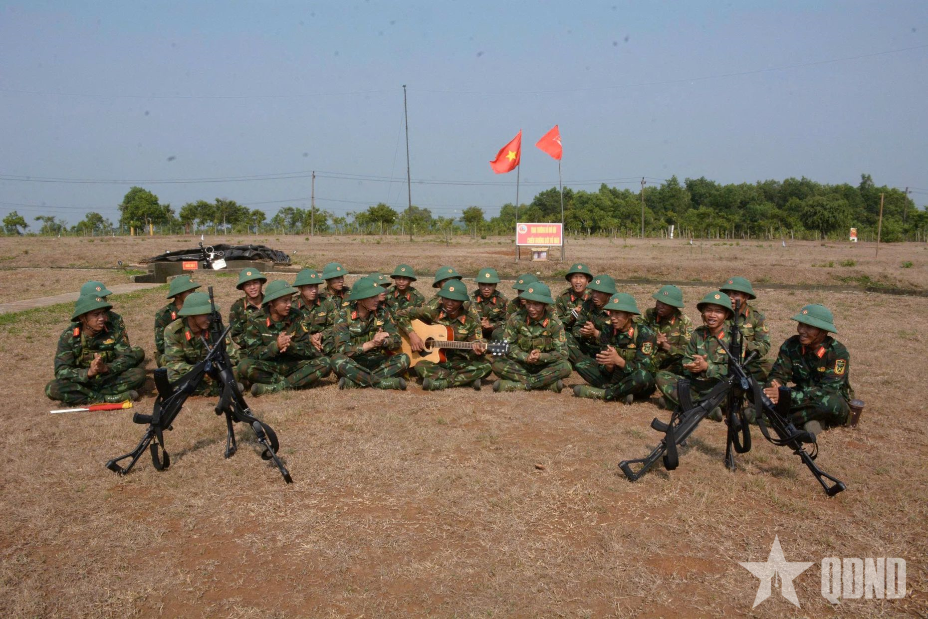 Trận địa phòng không rộn ràng tiếng hát, lời ca của những người lính trẻ.