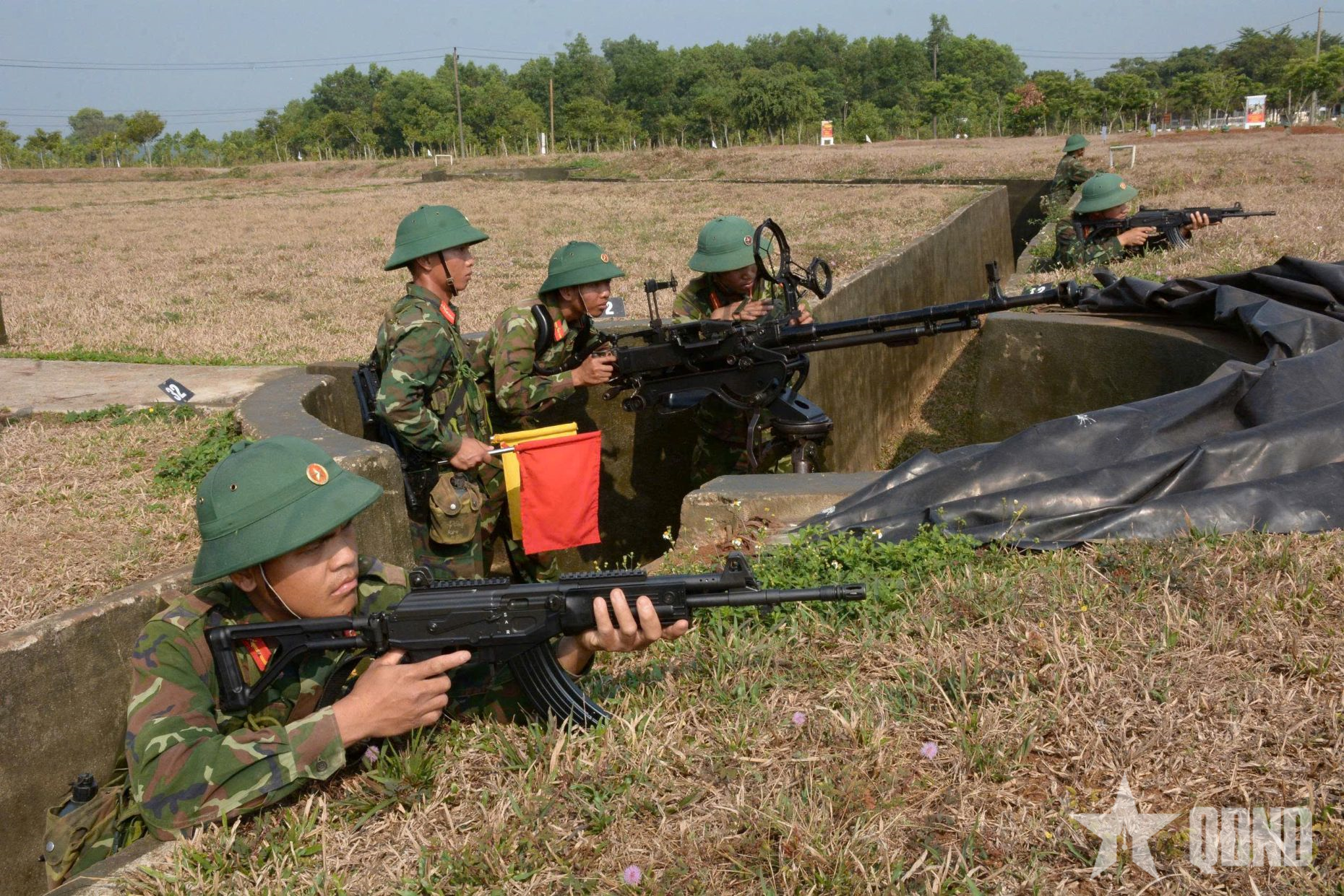 Các chiến sĩ khẩn trương cơ động chiếm lĩnh trận địa, làm công tác chuẩn bị chiến đấu.