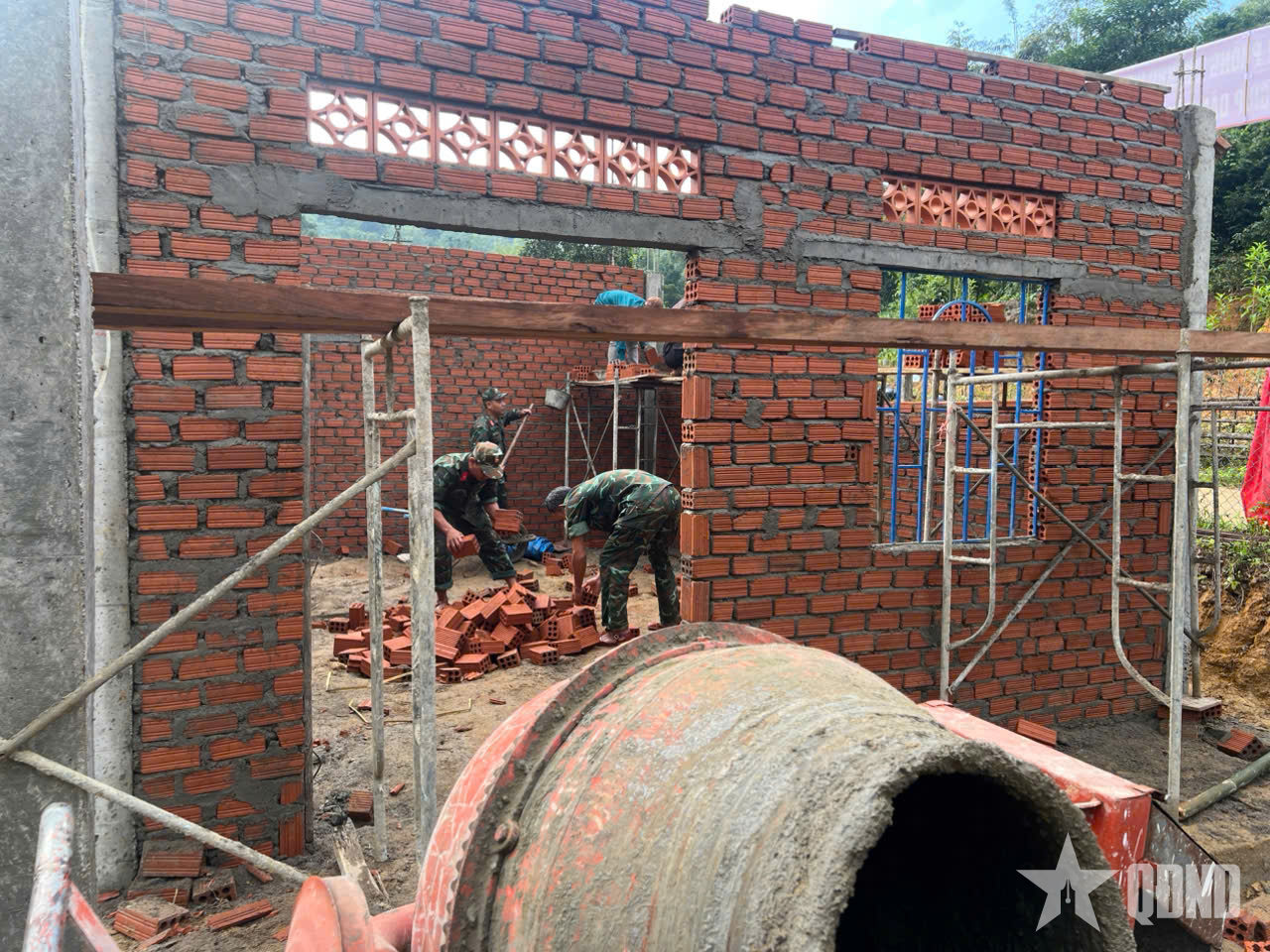 Ban Chỉ huy Phòng thủ khu vực 1 - Sơn Tịnh (Bộ CHQS tỉnh Quảng Ngãi) xây nhà cho các hộ dân.