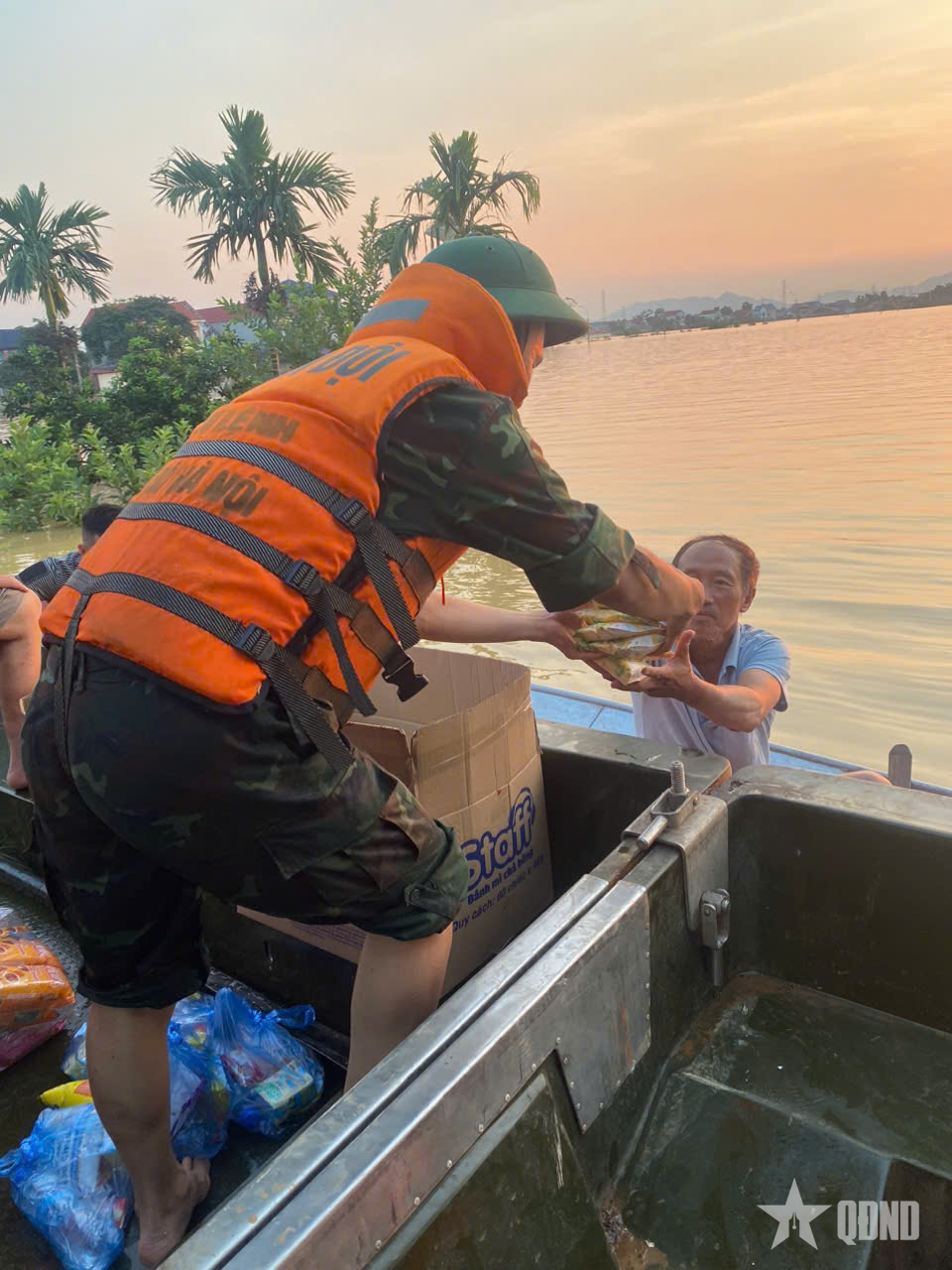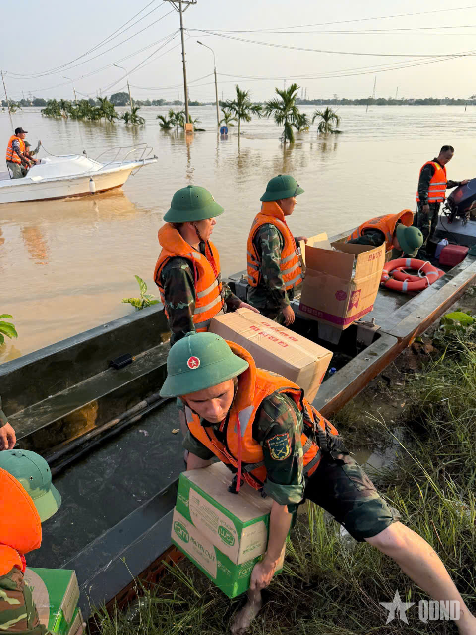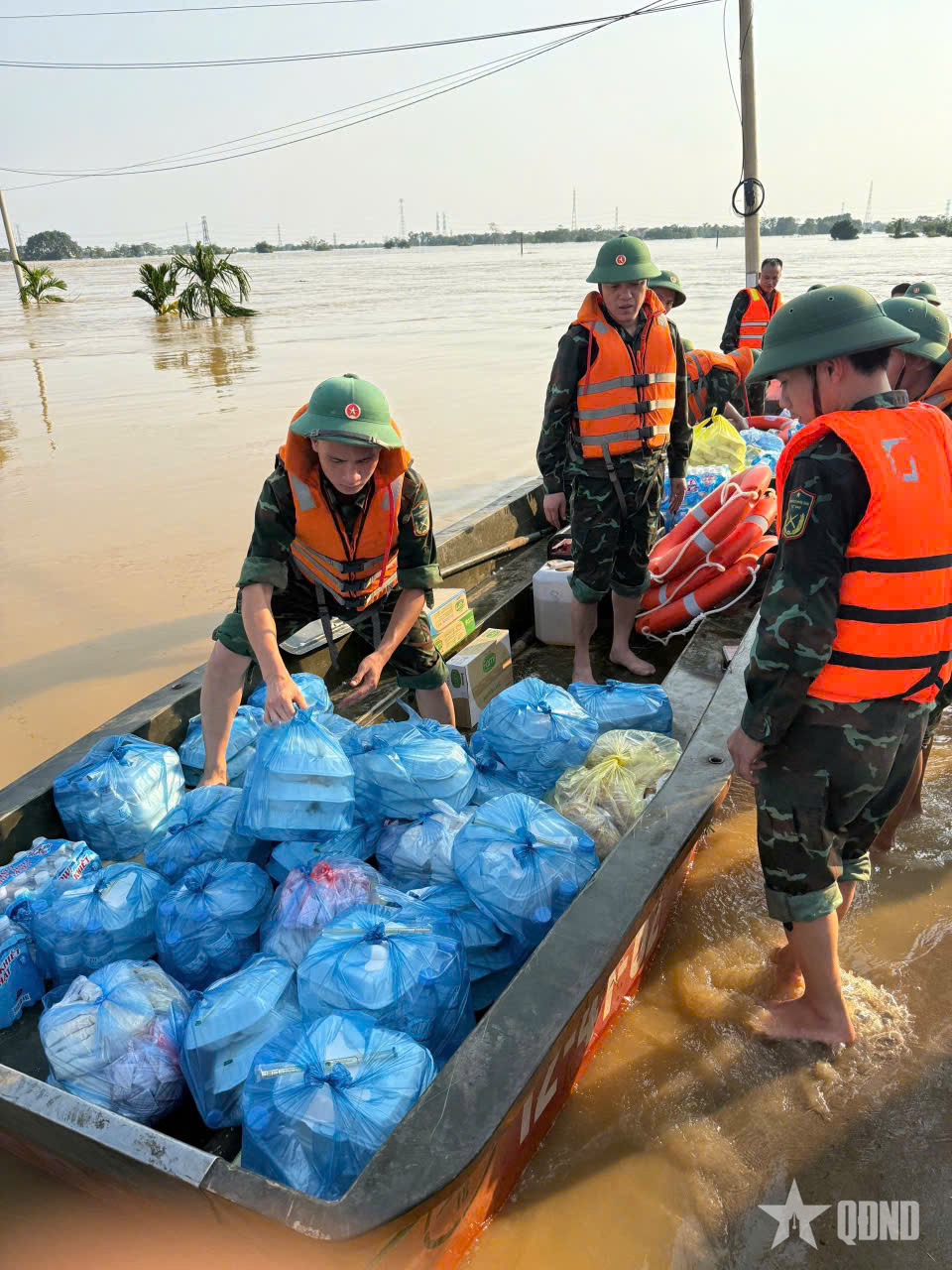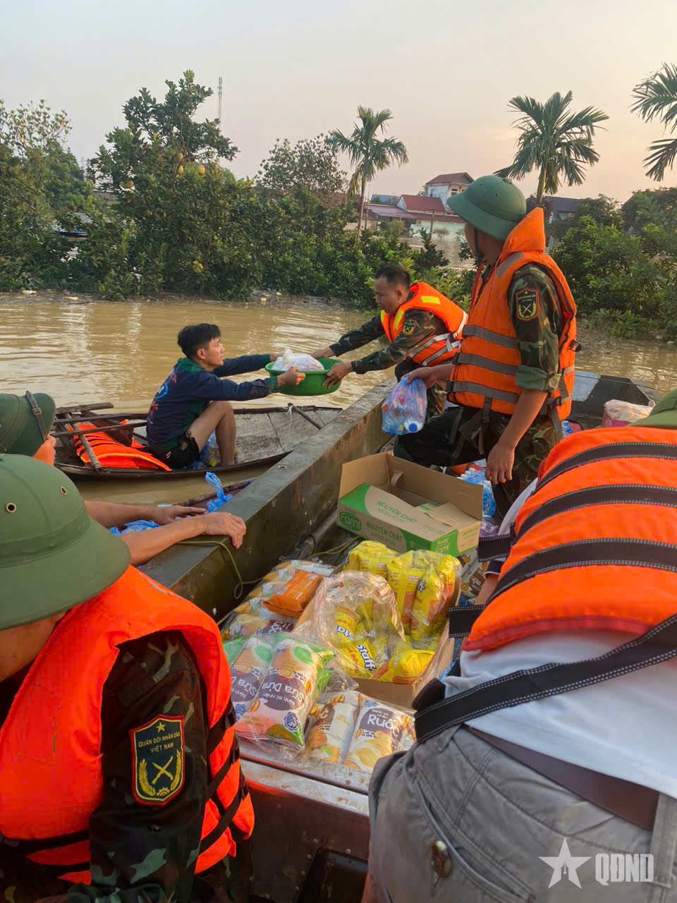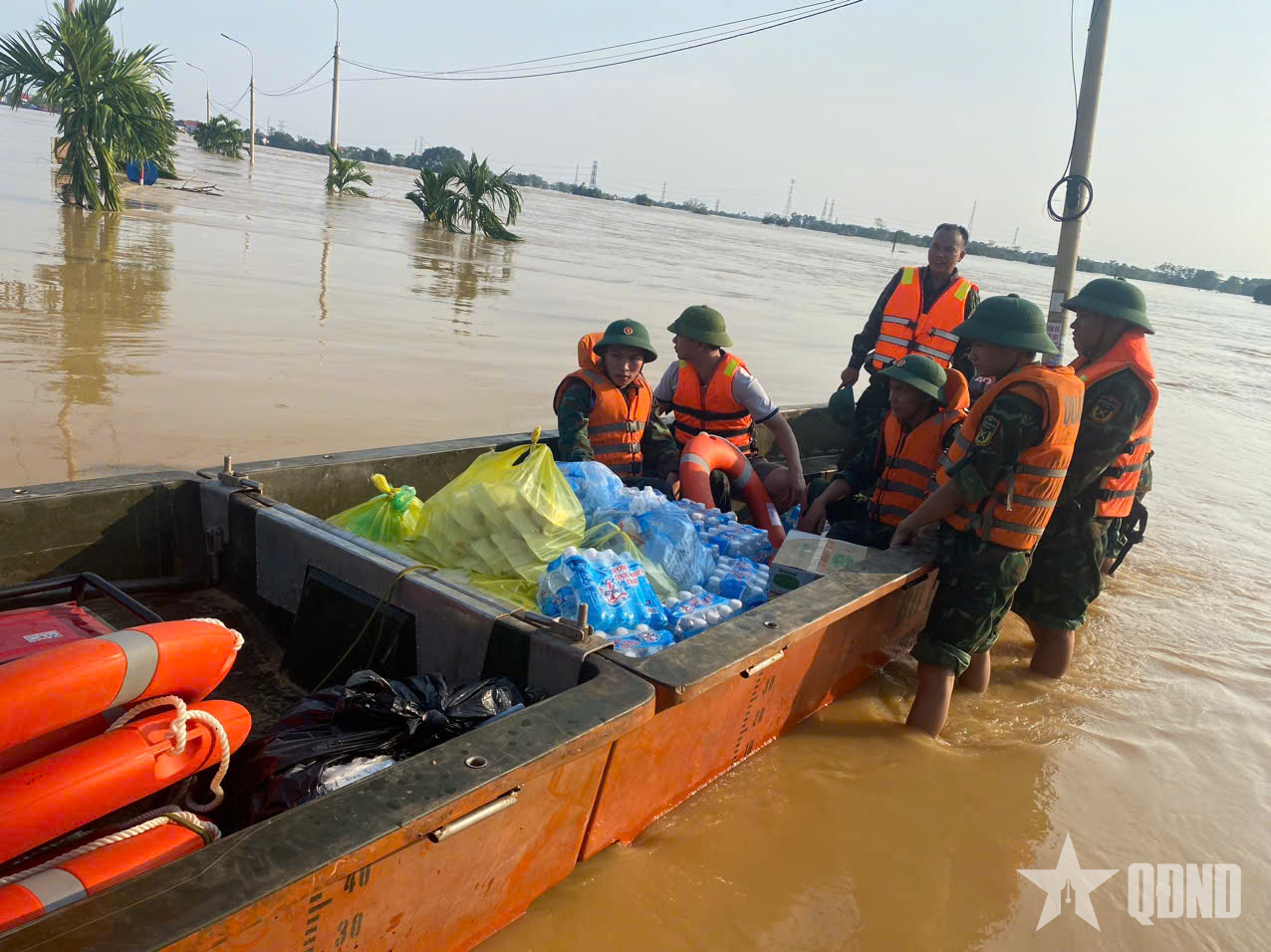 Cơ động lực lượng và hàng cứu trợ đến với nhân dân.