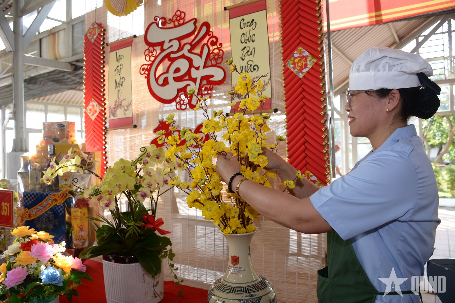 Không gian rực rỡ sắc xuân của các đội thi.