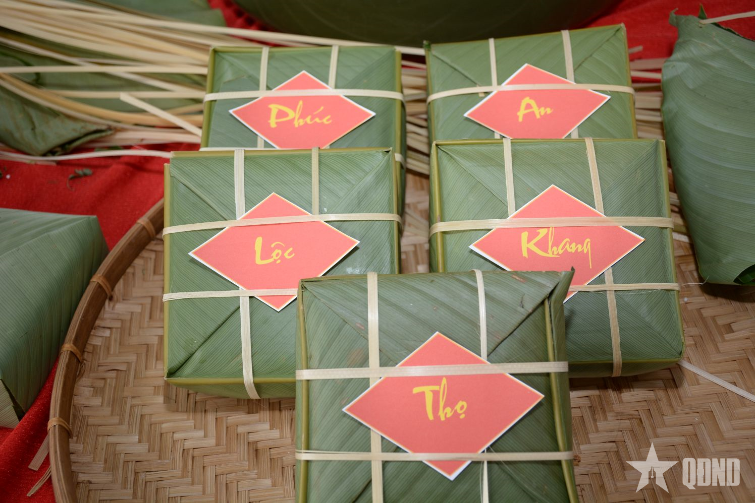 Bánh chưng được trang trí để đẹp hơn.