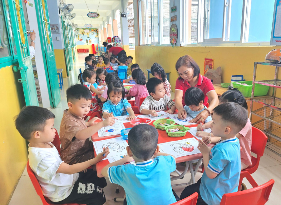 Theo dự thảo Nghị định, hệ số lương đặc thù của giáo viên mầm non là 1,25. Ảnh: Mộc Trà