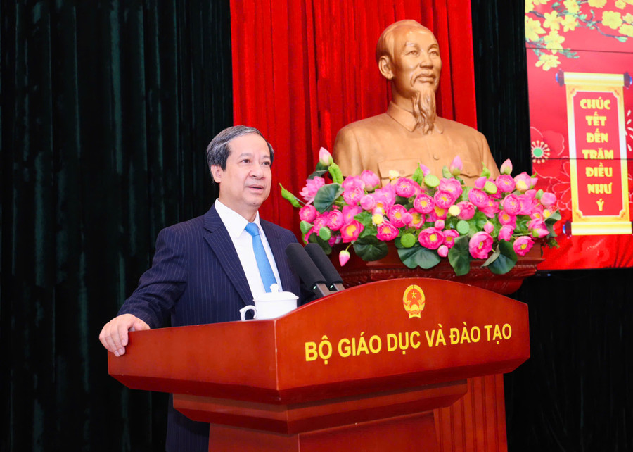 Nhân dịp năm mới, thay mặt lãnh đạo Bộ GD&ĐT, Bộ trưởng ghi nhận, biểu dương và trân trọng cảm ơn những đóng góp của toàn thể cán bộ, công chức, viên chức, người lao động. Gửi lời chúc mừng tốt đẹp nhất, Bộ trưởng bày tỏ mong muốn tập thể cơ quan Bộ tiếp tục đoàn kết, nỗ lực, phát huy thành quả đã đạt được để viết tiếp những kết quả và thành tựu mới trong năm mới Bính Ngọ.