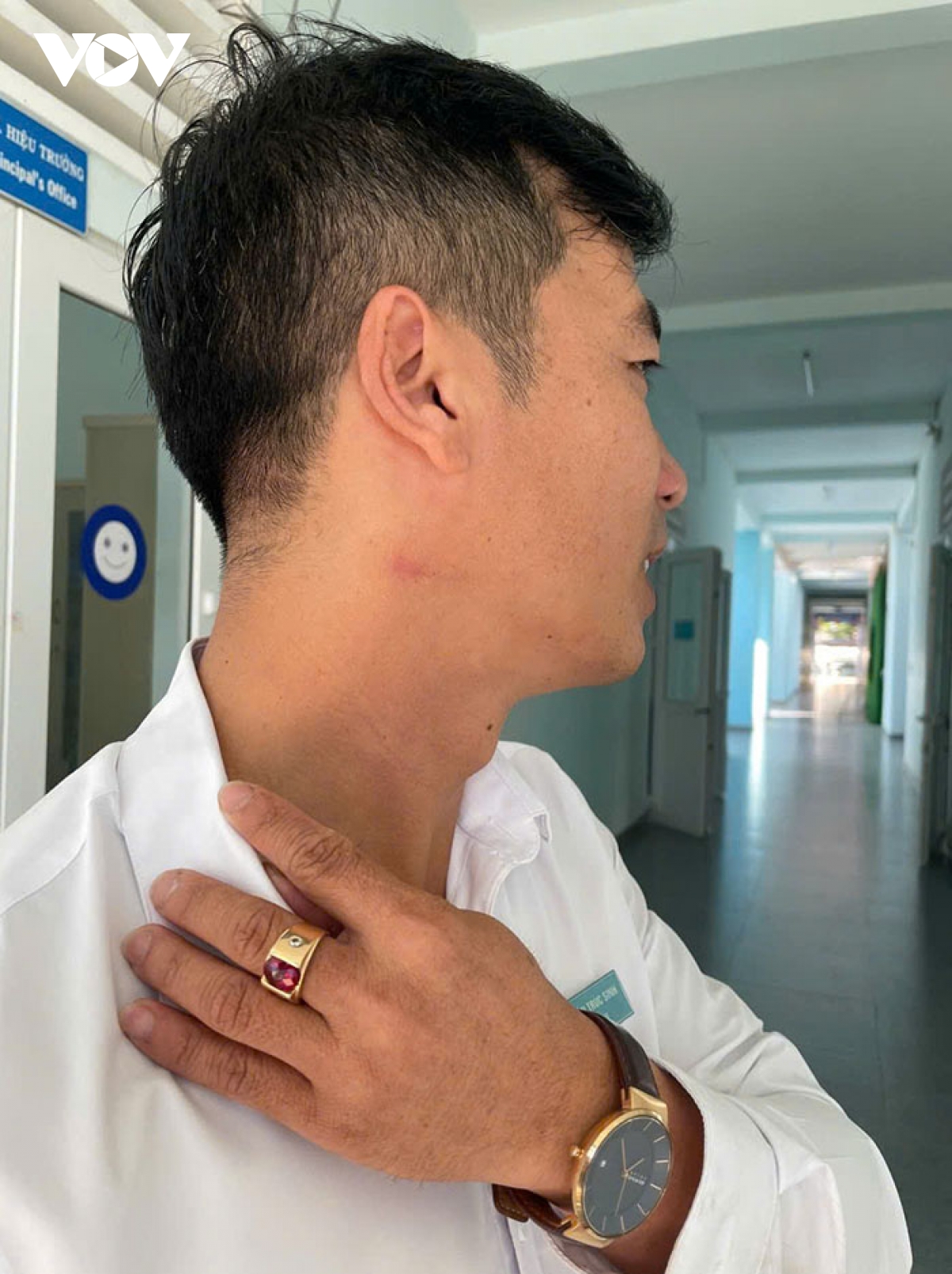 Thầy giáo bị thương do đồng nghiệp có hành vi bóp cổ.