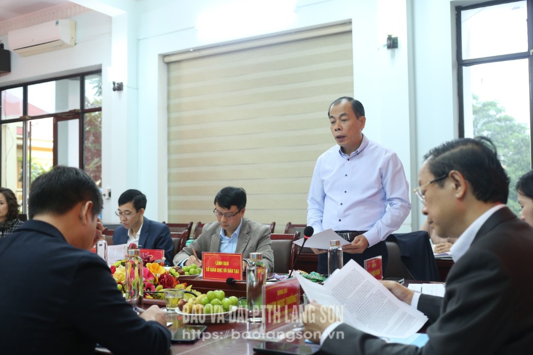 Phát biểu tại buổi làm việc, đồng chí Trần Thanh Nhàn, Phó Chủ tịch UBND tỉnh, trân trọng cảm ơn sự quan tâm, chia sẻ và hỗ trợ kịp thời của Bộ Giáo dục và Đào tạo đối với ngành giáo dục Lạng Sơn sau bão số 11.