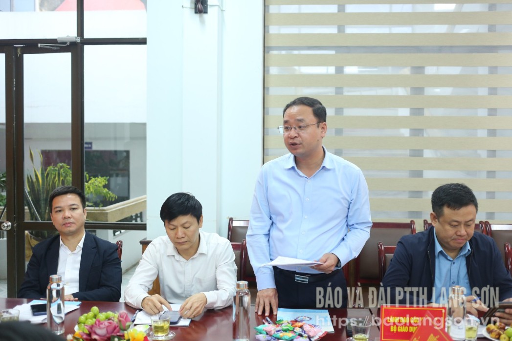 Đồng chí khẳng định, Bộ Giáo dục và Đào tạo sẽ tiếp tục đồng hành cùng tỉnh Lạng Sơn, hỗ trợ trong đào tạo, bồi dưỡng đội ngũ, hướng dẫn thực hiện chính sách mới và tháo gỡ khó khăn về cơ chế, nhằm giúp giáo dục của tỉnh phát triển bền vững, đáp ứng yêu cầu đổi mới trong giai đoạn tới.
