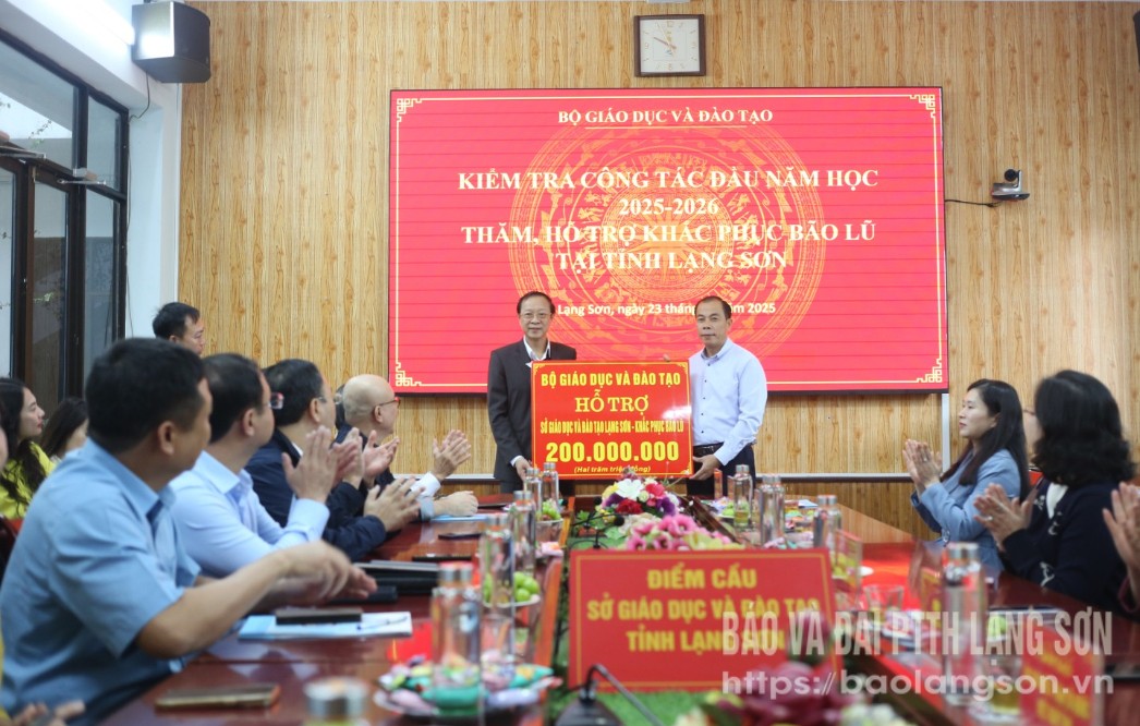 Lãnh đạo Sở Giáo dục và Đào tạo thành phố Hồ Chí Minh trao hỗ trợ khắc phục thiên tai cho ngành giáo dục Lạng Sơn