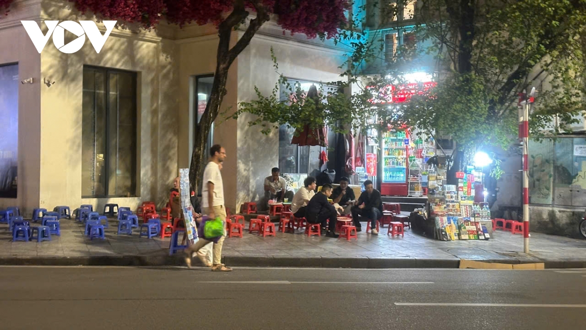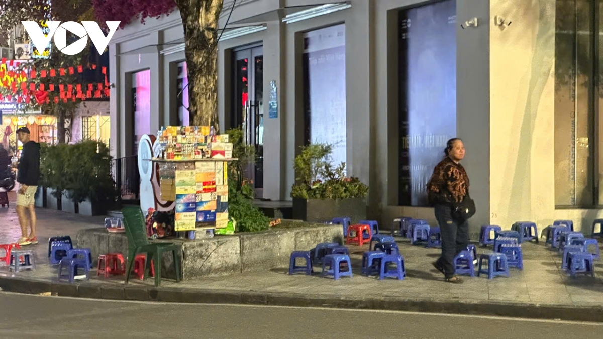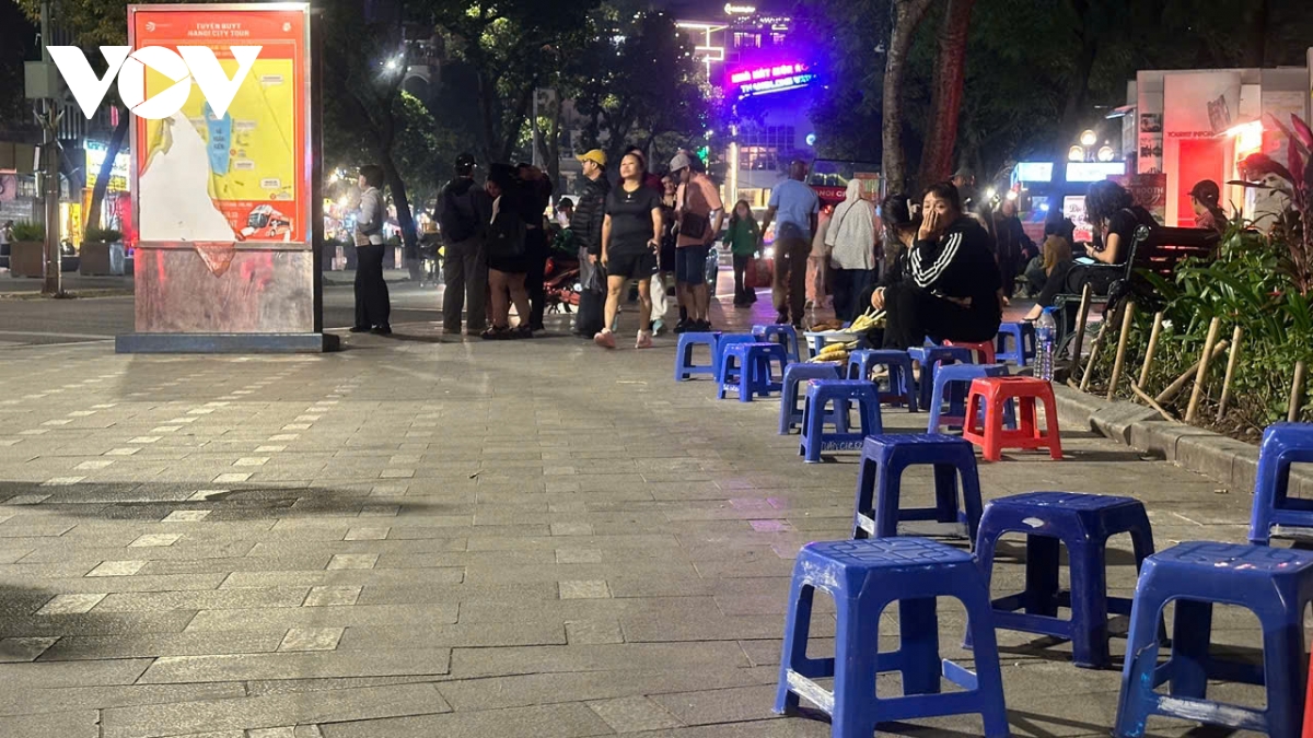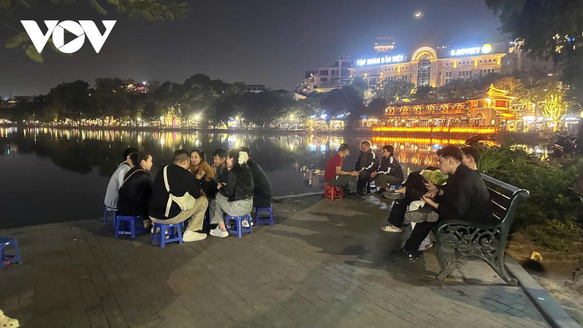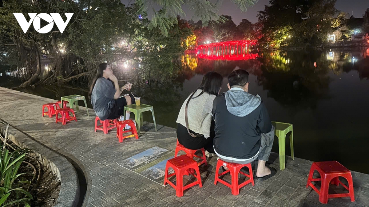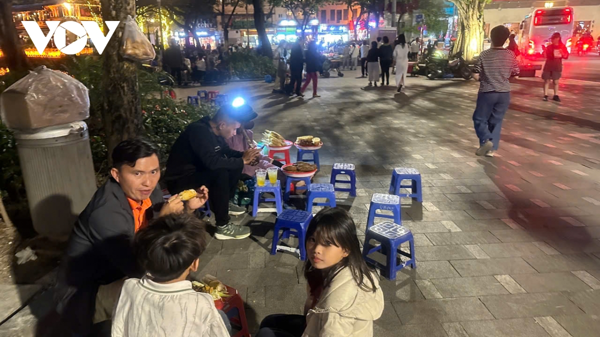 Theo ghi nhận của phóng viên, tối 25/11/2025, xung quanh bờ hồ Hoàn Kiếm, bàn ghế, hàng quán, trải la liệt khiến lối đi bộ bị thu hẹp; rác thải và khói than lan tỏa khắp không gian.