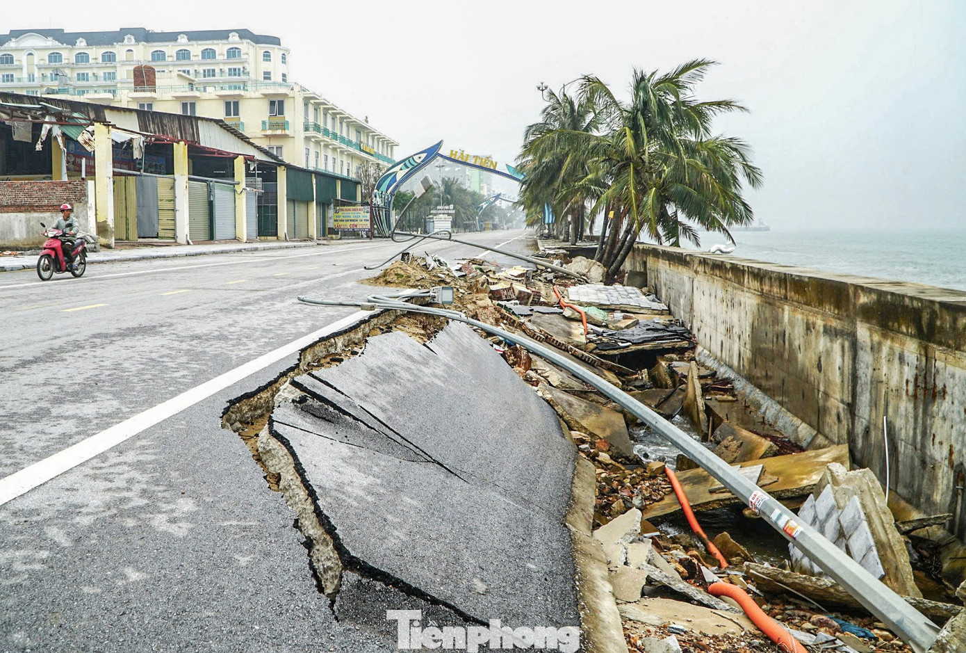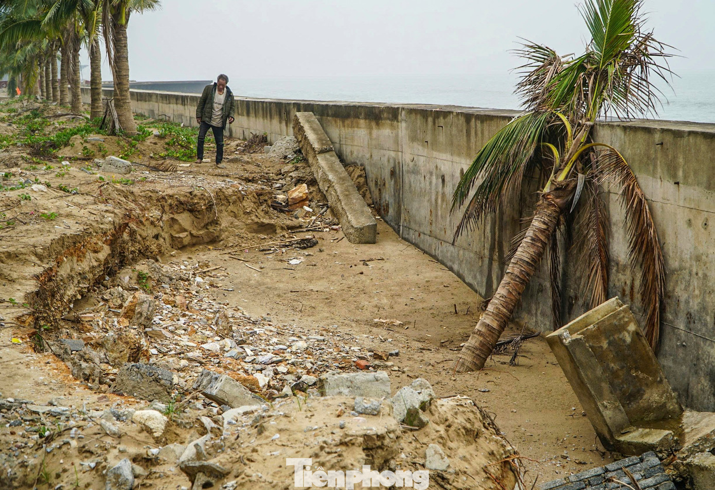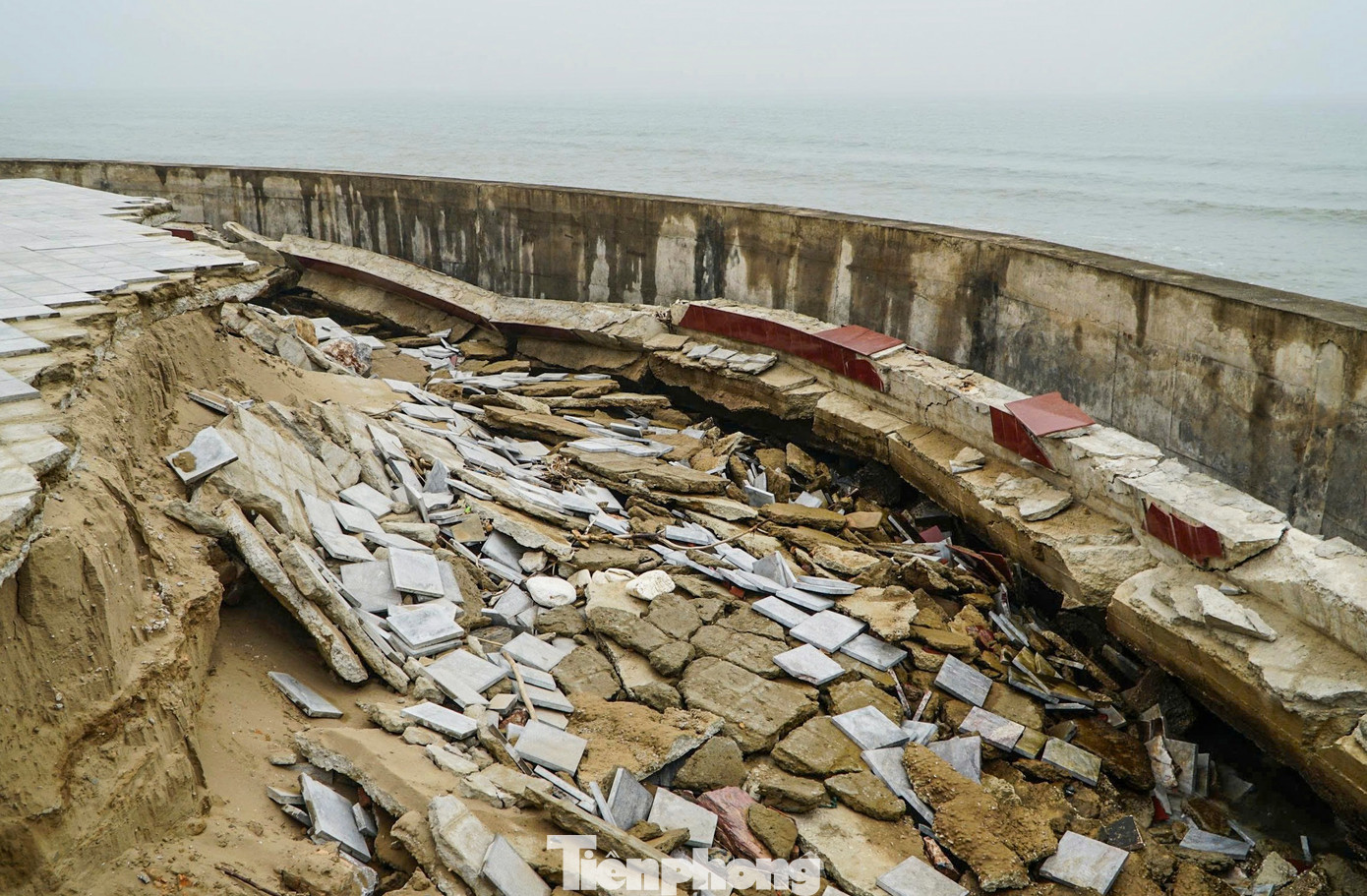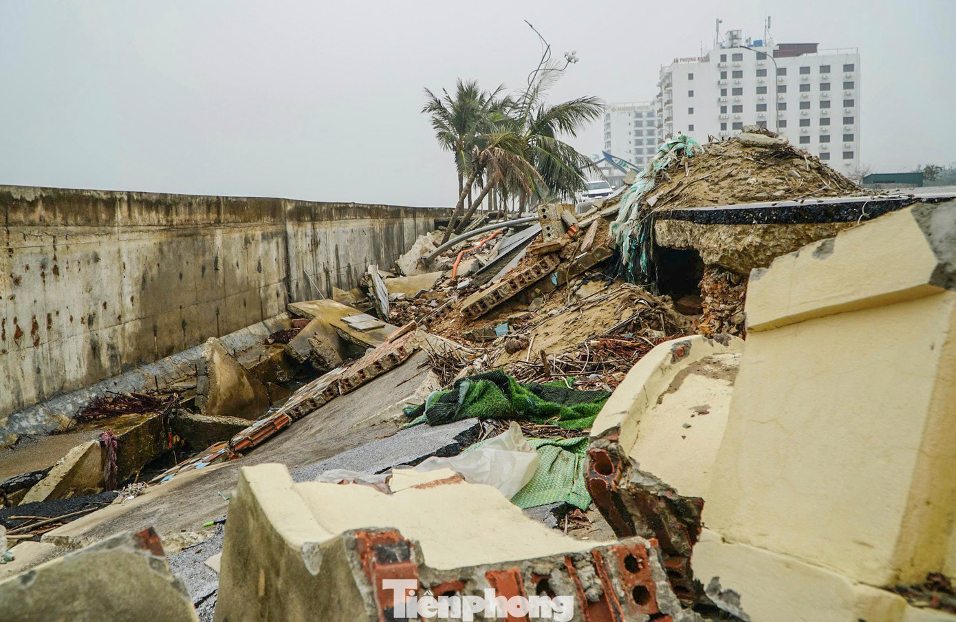 Những ngày đầu tháng 12, bờ kè biển ở Khu du lịch Hải Tiến, đoạn qua 2 xã Hoằng Tiến và Hoằng Thanh (tỉnh Thanh Hóa) vẫn ngổn ngang. Sau hàng loạt cơn bão trong năm, hàng trăm mét kè bị xé toang, sạt lở, hư hỏng nghiêm trọng.