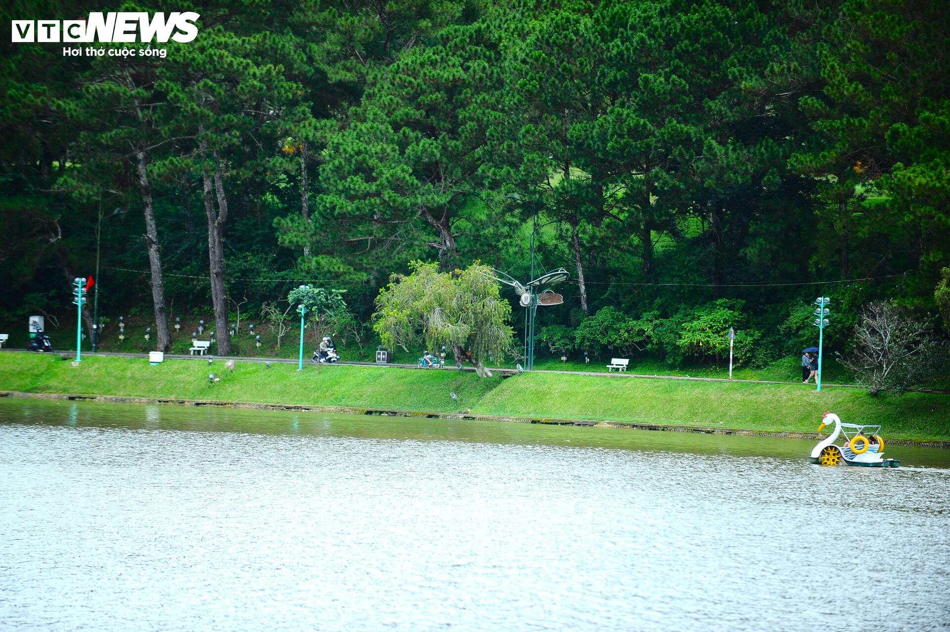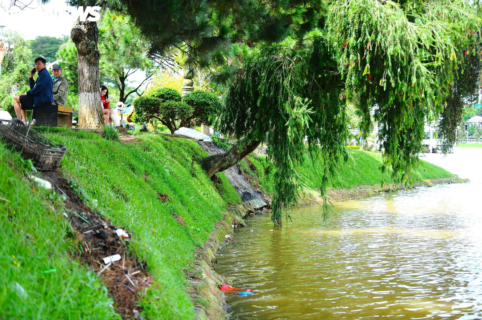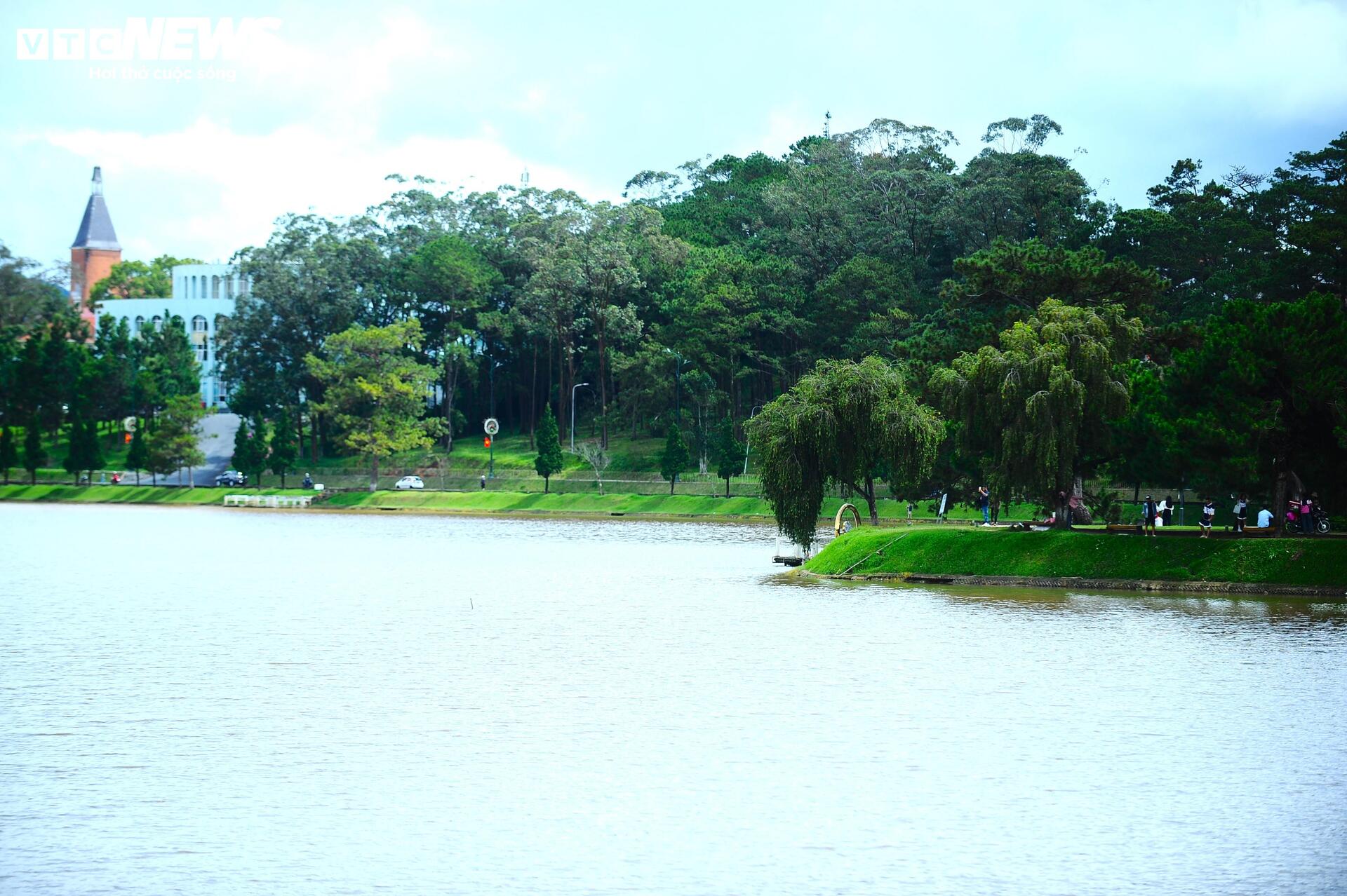 Khung cảnh thơ mộng quanh hồ Xuân Hương. Nhiều đoạn kè, taluy đã chìm hẳn xuống bên dưới làn nước.