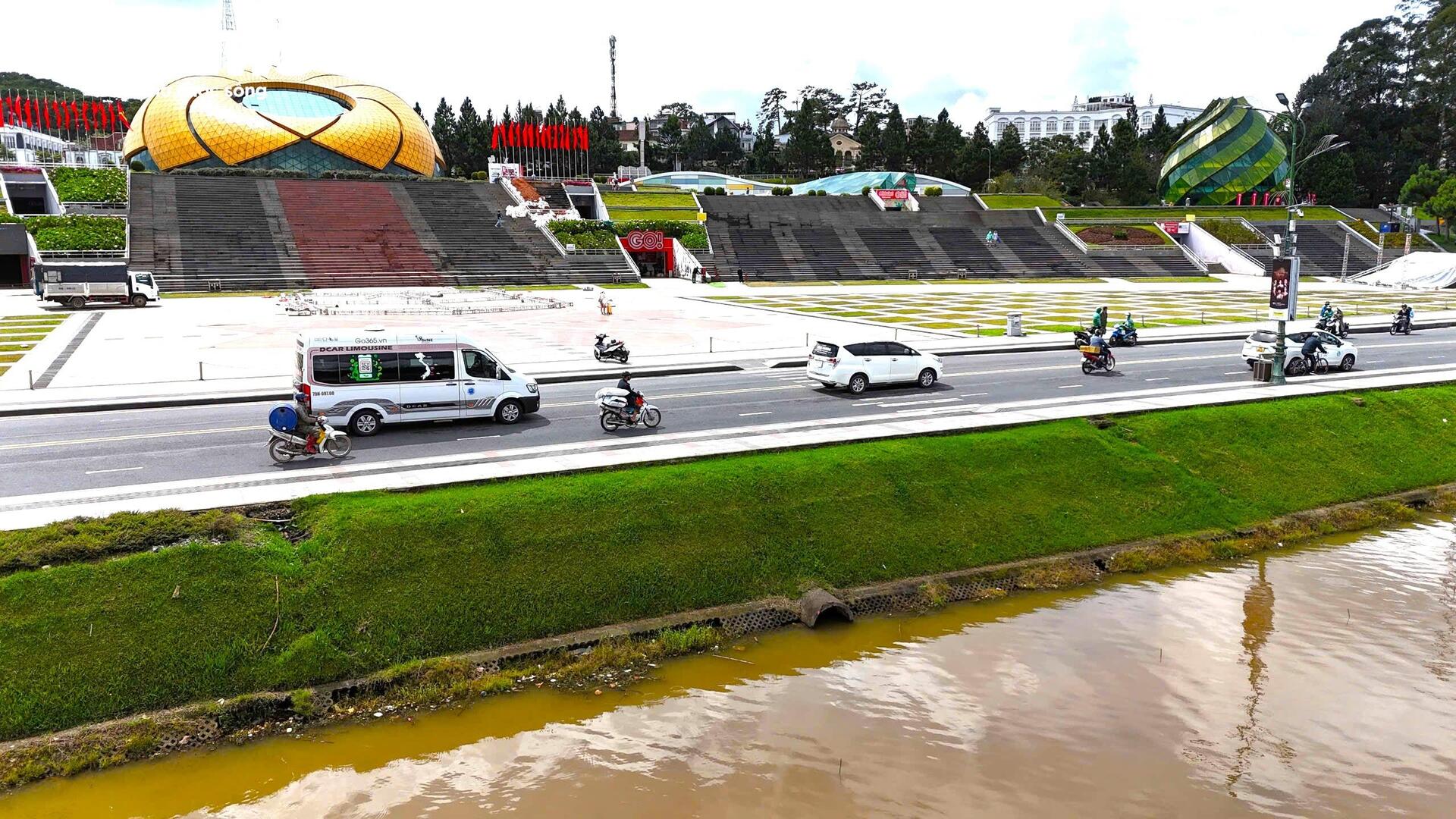 Vị trí trước quảng trường Lâm Viên bị sụt nhiều, toàn bộ tuyến kè tại vị trí này bị xô nghiêng đẩy ra phía hồ tạo nên một rãnh nứt kéo dài trên đỉnh mái phần tiếp giáp với lề đường trước quảng trường.