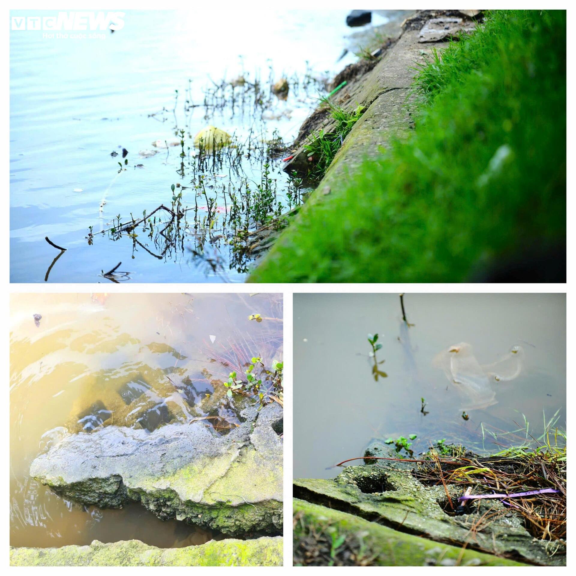 Bờ kè, taluy hư hỏng lỗ chỗ, rác thải từ bên trên đổ xuống thẳng bên dưới hồ ngay cạnh khu vực du khách ngồi ngắm cảnh gây mất mỹ quan.