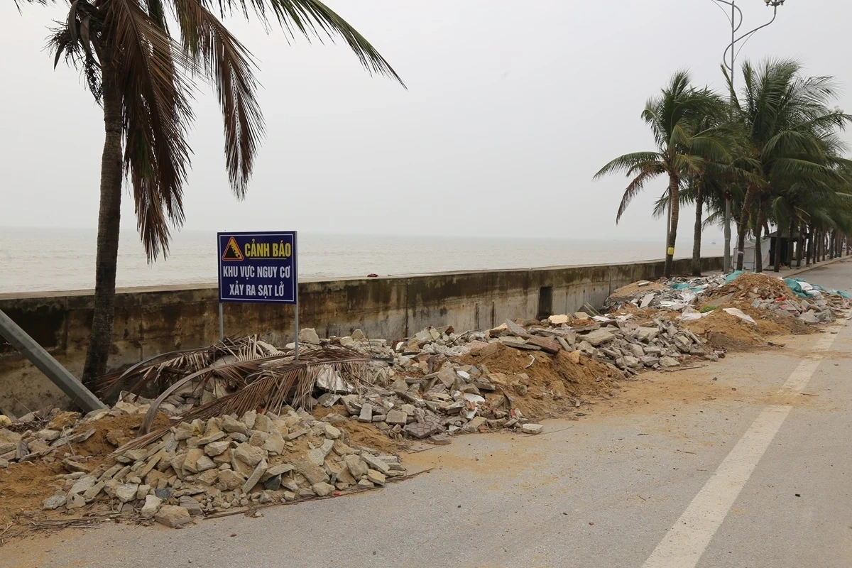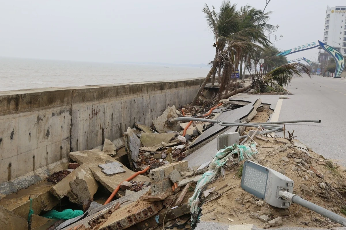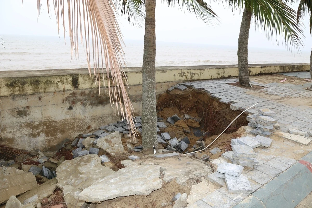 Các vị trí sạt lở phát triển nhanh, lấn sâu vào tuyến đường giao thông ven biển (gắn liền với tuyến kè biển) làm tuyến đường và các hạng mục phụ trợ bị hư hỏng nặng.