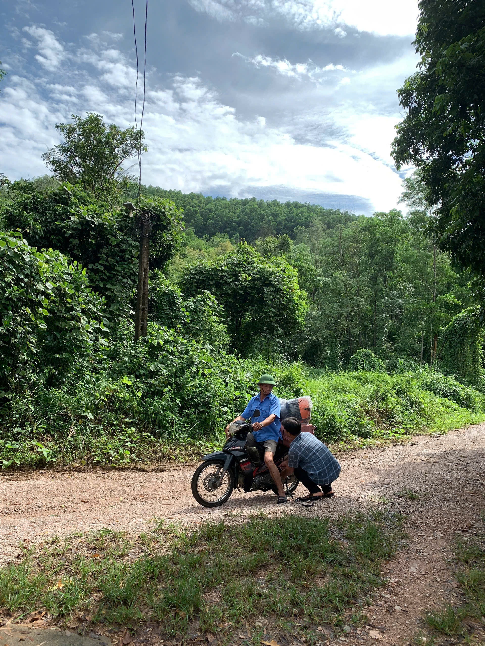 Bố con Quyên "trèo đèo lội suối" để kịp ra sân bay hôm 8/10.