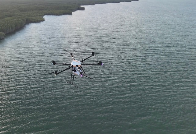 UAV đang được thí điểm vận chuyển bưu chính kết nối Cần Giờ-Vũng Tàu. Ảnh: CT Group