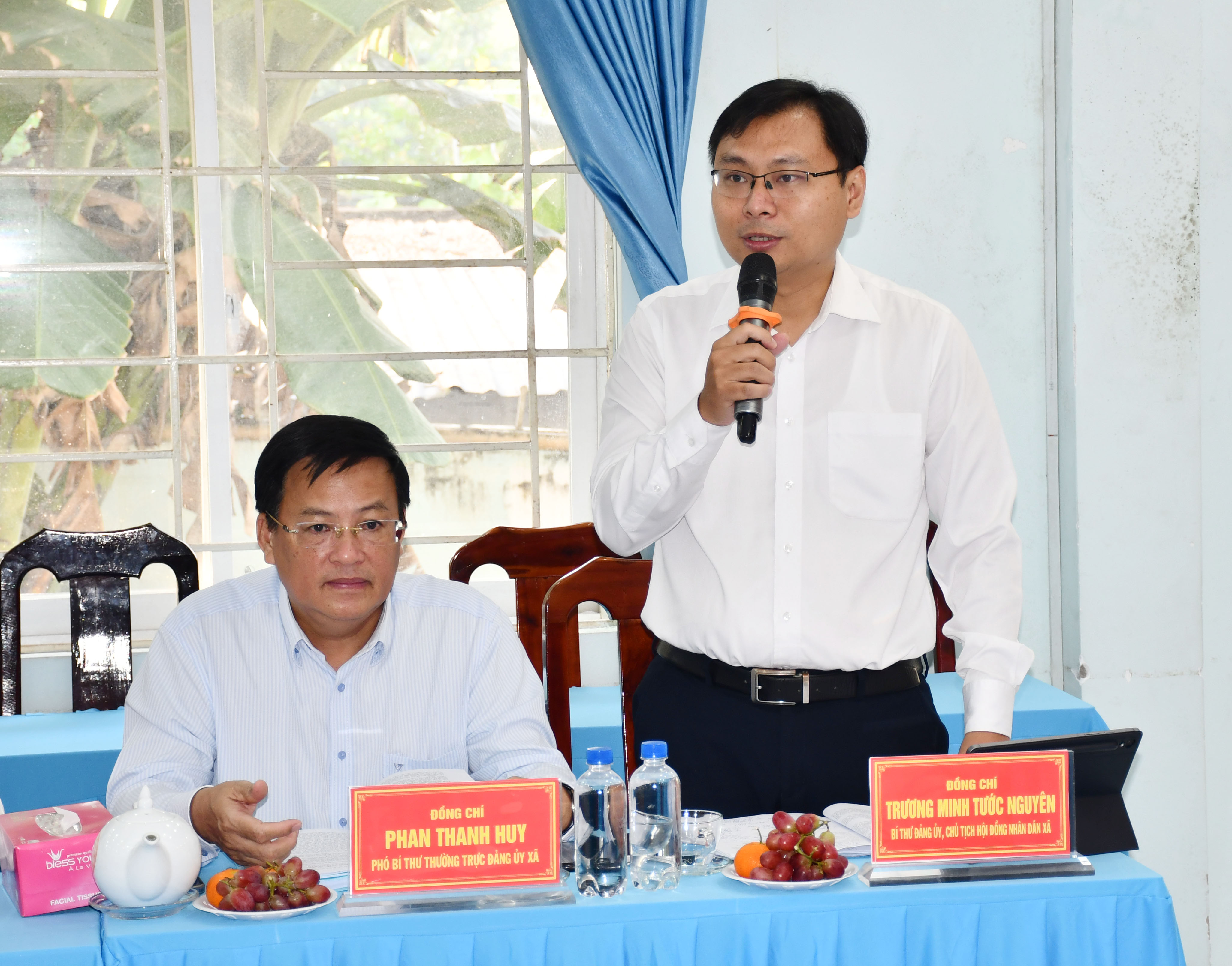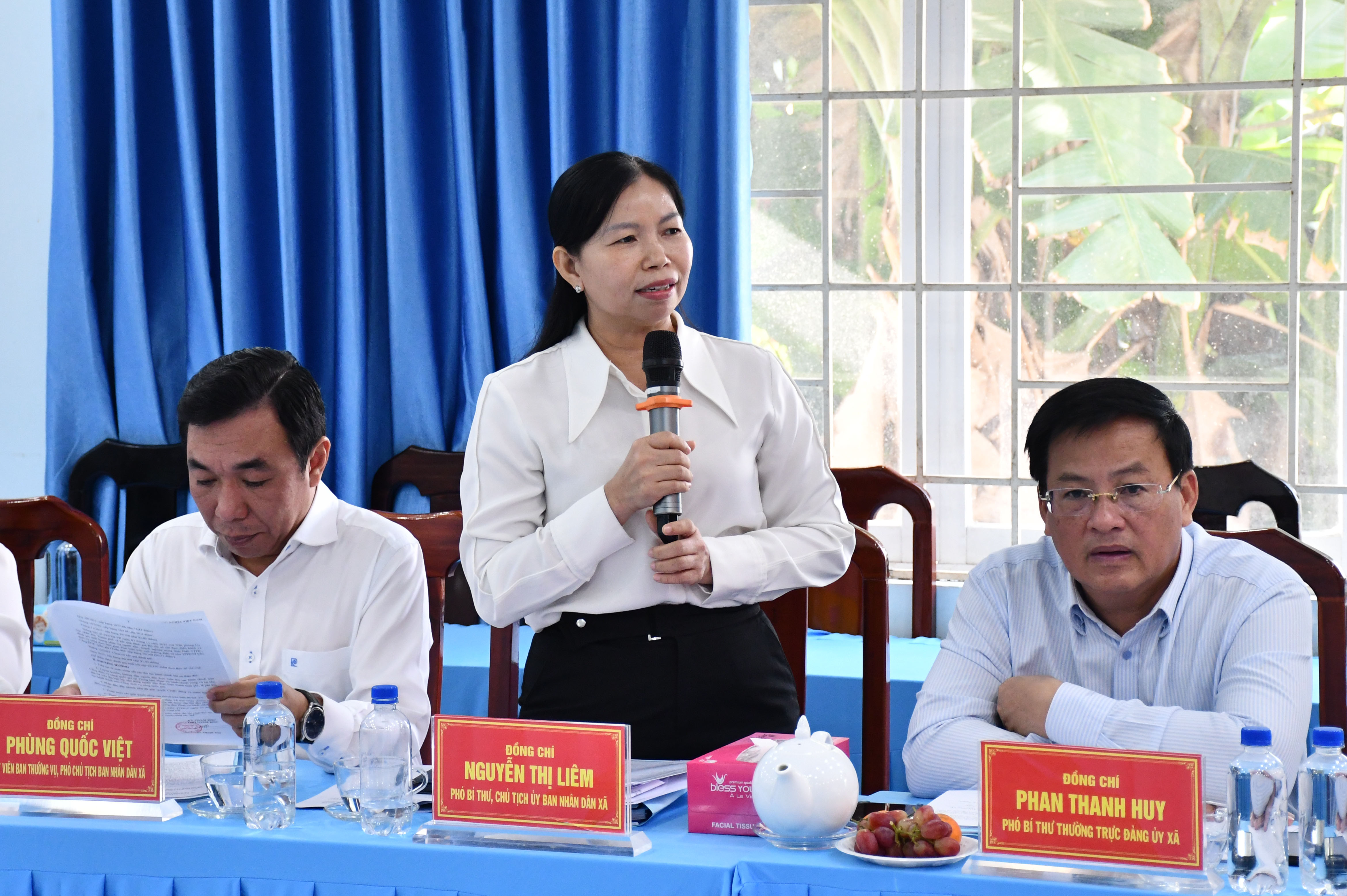 Phó Bí thư Đảng ủy, Chủ tịch UBND xã Bình Lợi báo cáo tại buổi làm việc