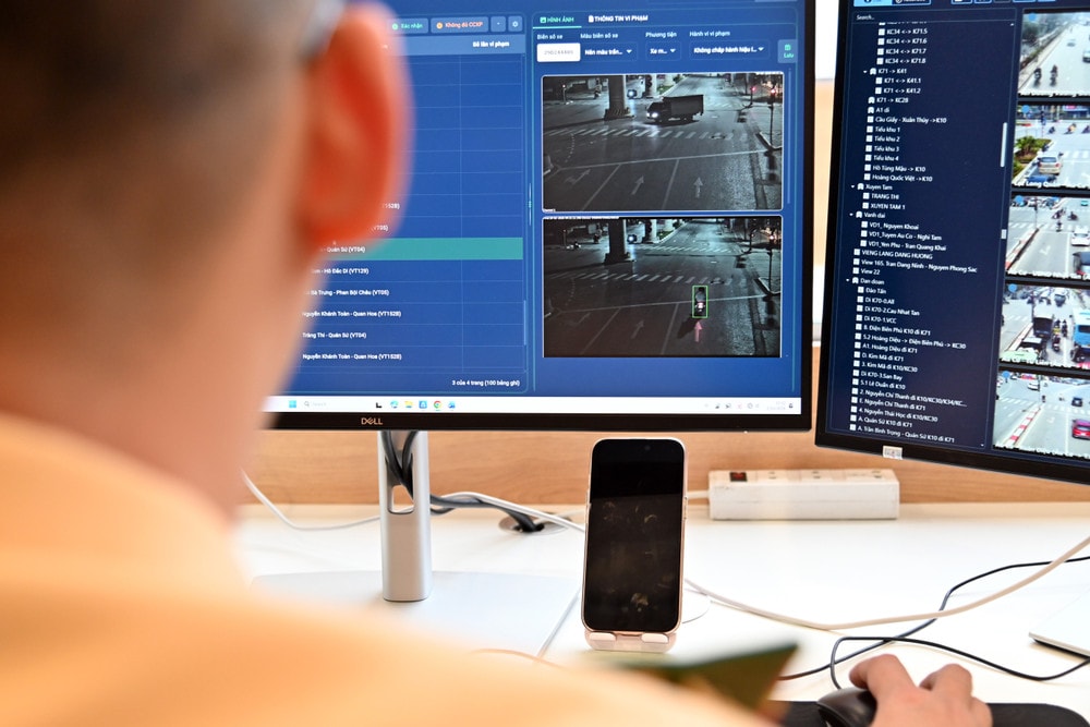 Tại Trung tâm Điều khiển giao thông thuộc Phòng CSGT Công an TP Hà Nội, không gian phòng điều hành luôn sáng rực ánh màn hình. Hàng chục màn hình lớn nhỏ liên tục cập nhật hình ảnh theo thời gian thực từ hệ thống camera AI phủ khắp các tuyến, nút giao trọng điểm.