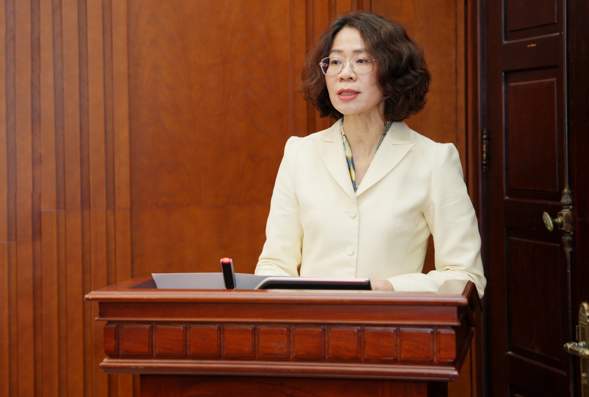 Cục trưởng Cục Quản lý, giám sát tổ chức tín dụng Nguyễn Thị Thu Hương phát biểu nhận nhiệm vụ
