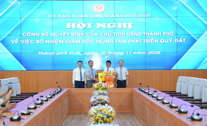 Theo quyết định được công bố, Chủ tịch UBND thành phố bổ nhiệm ông Trương Phước Tuấn, Giám đốc Trung tâm Phát triển quỹ đất thuộc Sở Nông nghiệp và Môi trường giữ chức vụ Giám đốc Trung tâm Phát triển quỹ đất thuộc UBND thành phố Huế.