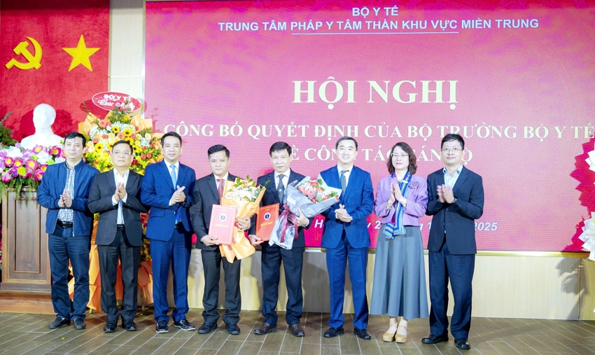 Tại hội nghị, đại diện Bộ Y tế đã công bố các quyết định quan trọng liên quan đến công tác nhân sự của Trung tâm. Theo đó, căn cứ Quyết định số 1289/QĐ-BYT ngày 16/5/2024 của Bộ trưởng Bộ Y tế về tiêu chuẩn, điều kiện, quy trình bổ nhiệm và bổ nhiệm lại các chức vụ quản lý trong đơn vị sự nghiệp công lập, Bộ trưởng Bộ Y tế Đào Hồng Lan đã ký ban hành quyết định bổ nhiệm lại chức vụ Giám đốc Trung tâm đối với BSCKII. Nguyễn Đăng Nguyên; đồng thời bổ nhiệm BSCKI. Nguyễn Quốc Phương giữ chức vụ Phó Giám đốc phụ trách chuyên môn của Trung tâm Pháp y tâm thần khu vực miền Trung.