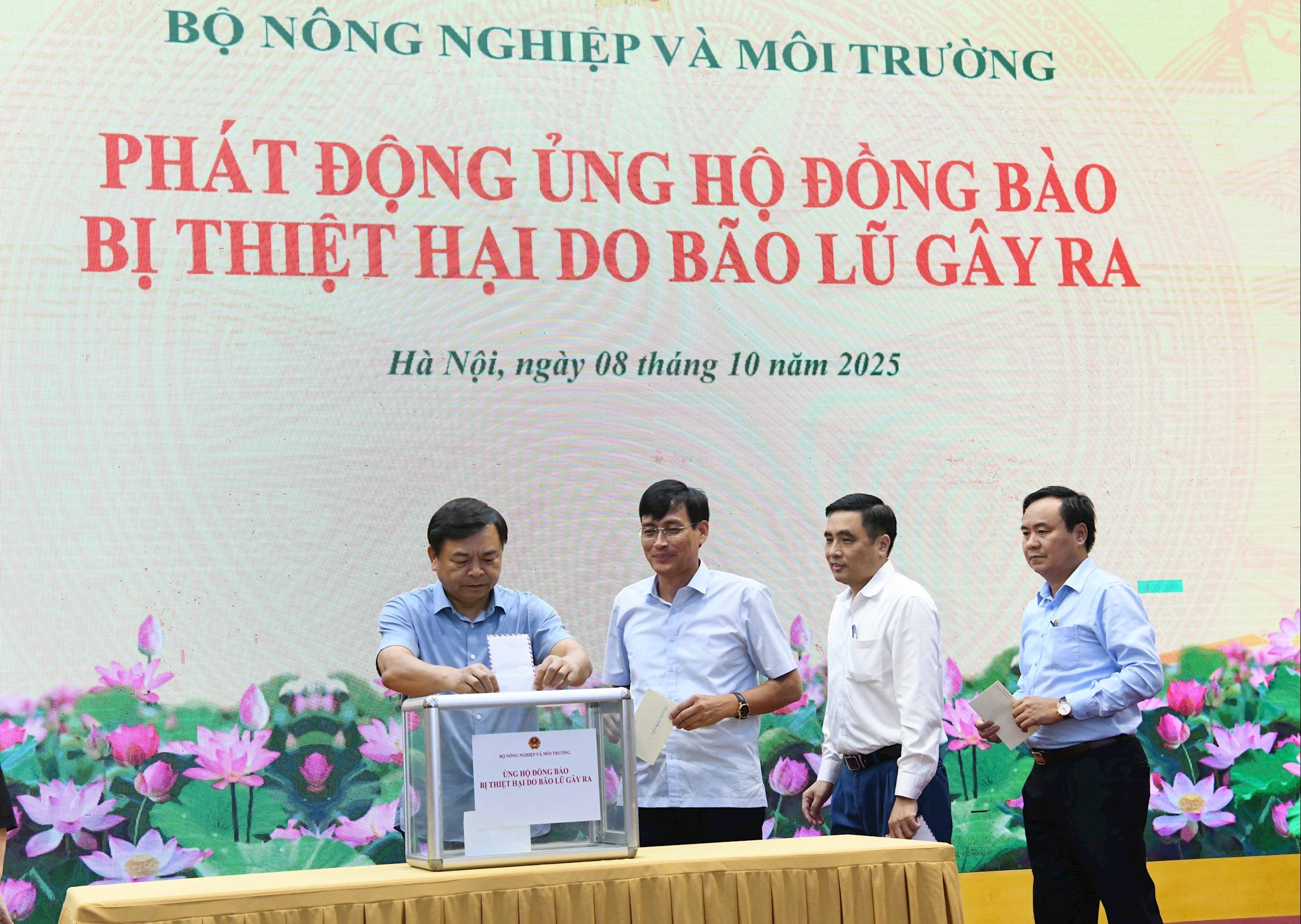 Tại buổi lễ, Quyền Bộ trưởng Bộ Nông nghiệp và Môi trường Trần Đức Thắng đã phát động và kêu gọi toàn thể cán bộ, công chức, viên chức, người lao động trong toàn ngành quyên góp, ủng hộ ít nhất một ngày lương nhằm giúp đồng bào vùng thiên tai khắc phục hậu quả, sớm ổn định cuộc sống và sản xuất.