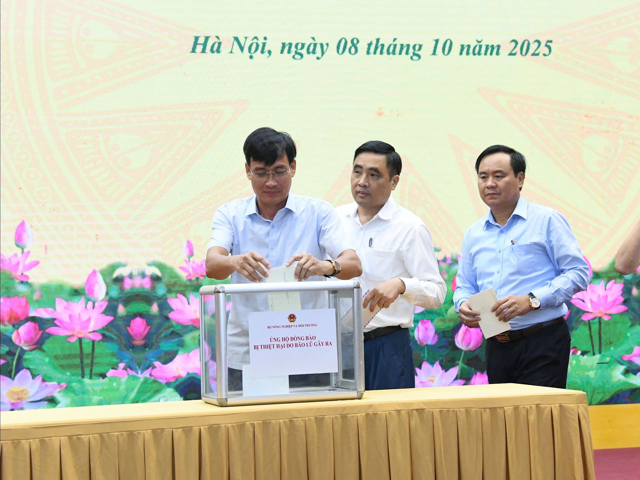 Cán bộ, công chức, viên chức và người lao động Bộ Nông nghiệp và Môi trường ủng hộ đồng bào bị thiệt hại do bão lũ.
