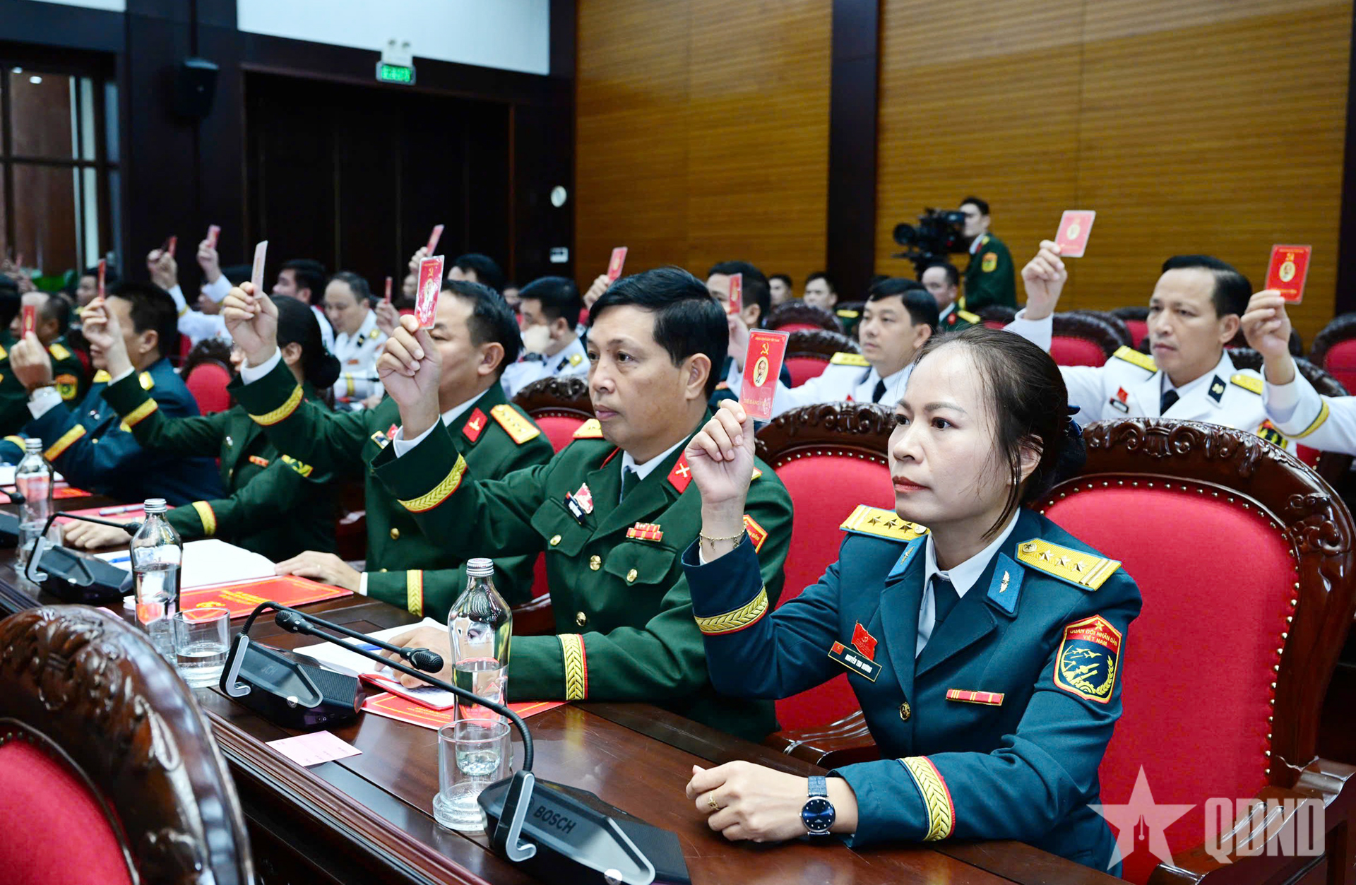 Các đại biểu biểu quyết thông qua danh sách Đoàn đại biểu Đảng bộ Quân đội đi dự Đại hội lần thứ XIV của Đảng.