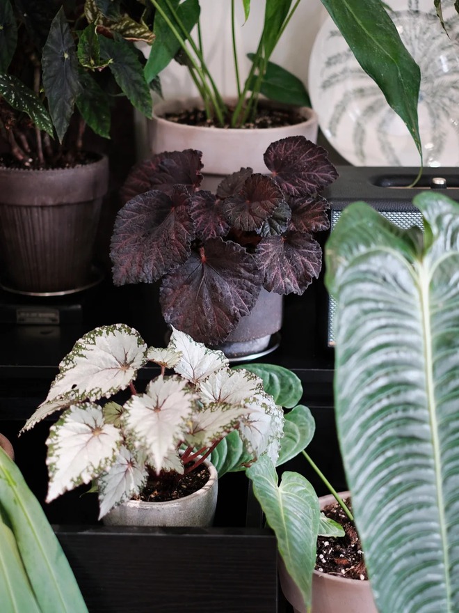 Là một tín đồ của dòng cây nhiệt đới (tropical plants), Samuel đã từng "nằm vùng" trong các hội nhóm, thử nghiệm và chắt lọc ra những cái tên xứng đáng để bạn rước về nhà. Nếu bạn cũng mê mẩn những chiếc lá to bản, xẻ rách đầy nghệ thuật hay những chiếc lá nhung mượt mà, hãy thử tìm kiếm: Trầu bà Nam Mỹ (Monstera), các dòng Anthurium (Hồng môn) lá đẹp như Clarinervium, Crystallinum, hay những dòng Thu hải đường (Begonia) đầy màu sắc, Trầu bà thanh xuân, Cây đuôi công... Đây đều là những "gương mặt thương hiệu" giúp ban công của bạn trông như một resort thu nhỏ.