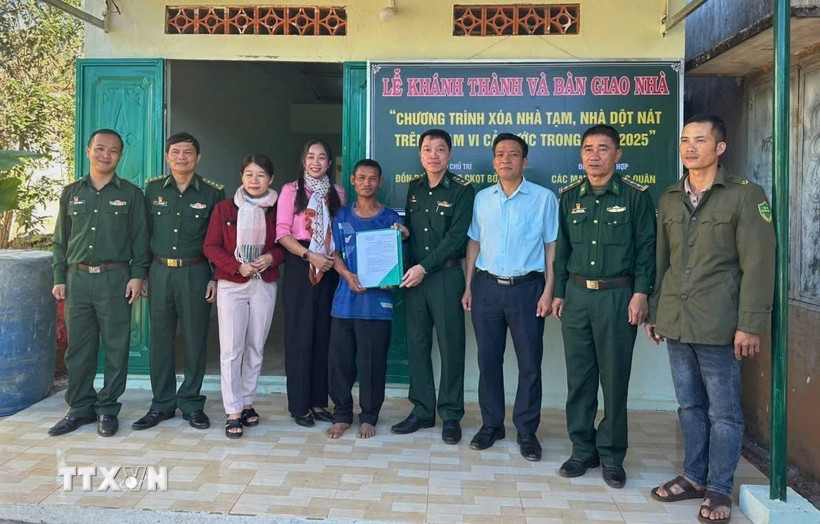 Bộ Chỉ huy Bộ đội Biên phòng tỉnh Kon Tum bàn giao công trình nhà ở được xây mới cho bà con vùng biên giới thực hiện theo chương trình xóa nhà tạm, dột nát trên địa bàn. (Ảnh: Khoa Chương/TTXVN)