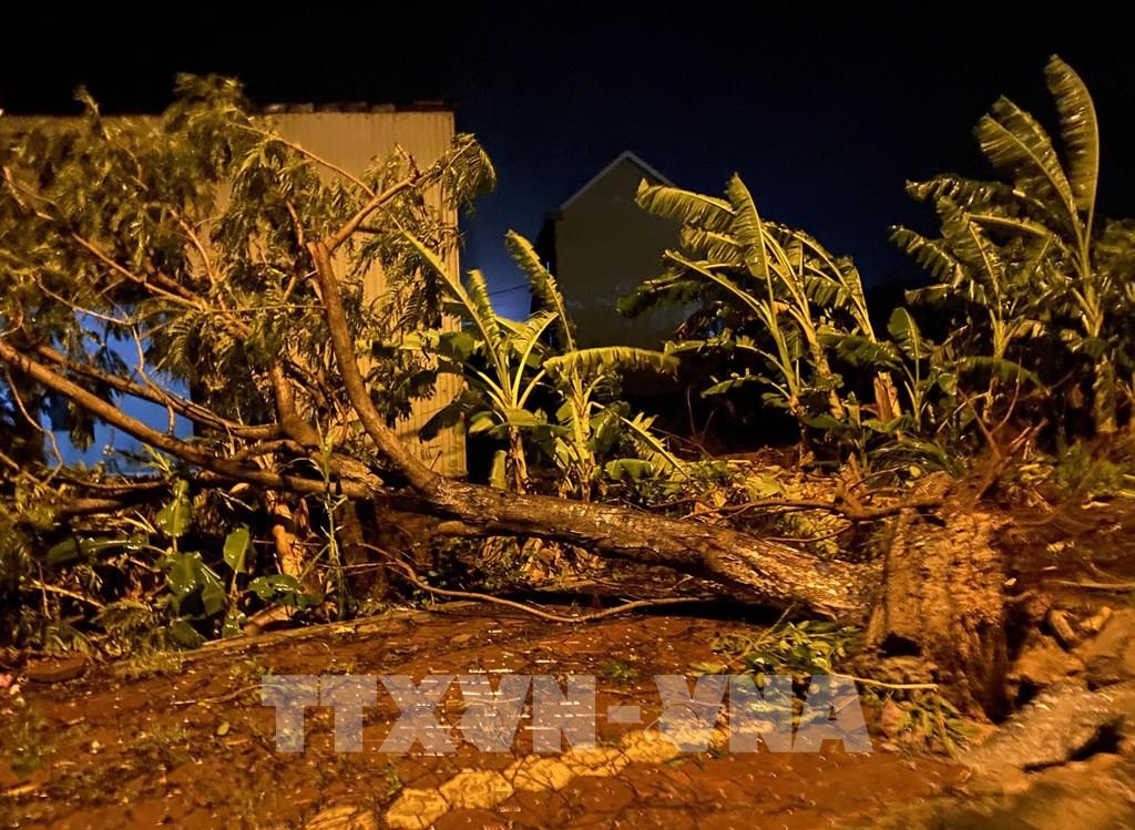 Cây cối ngã đổ do gió quật ảnh hưởng bão số 13. Ảnh: Lê Phước Ngọc - TTXVN
