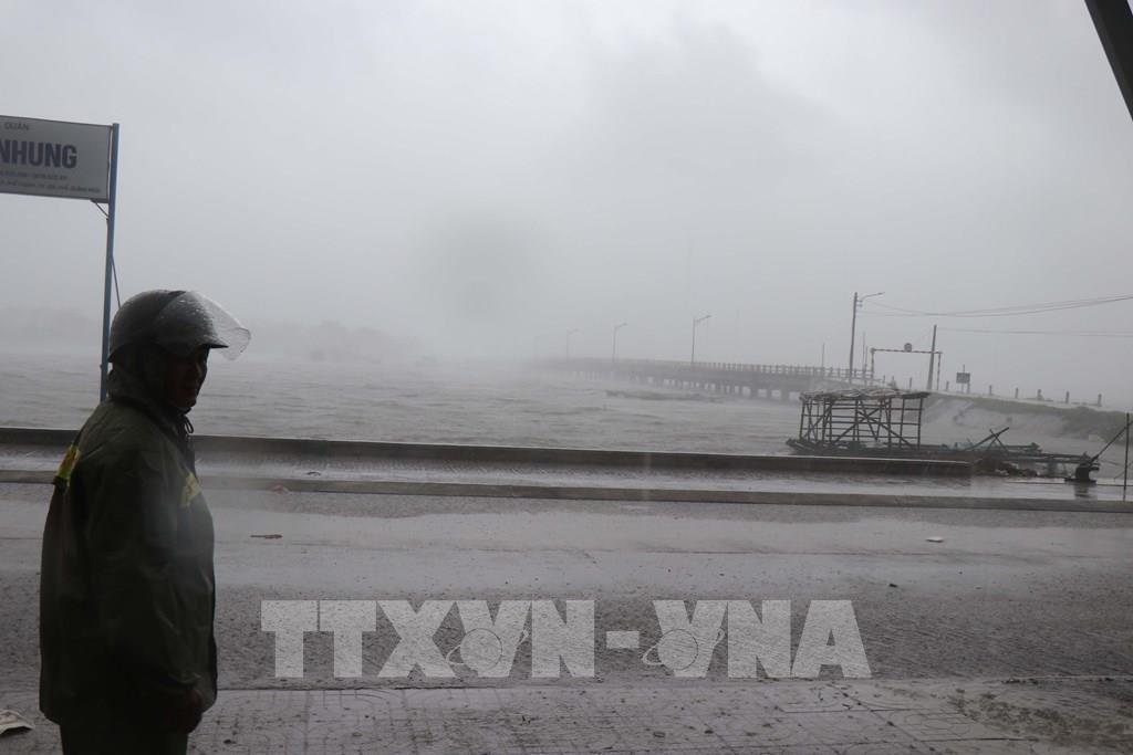 Mưa lớn, gió giật mạnh do bão số 13 tại phường Sa Huỳnh, tỉnh Quảng Ngãi. Ảnh: Phạm Cường-TTXVN