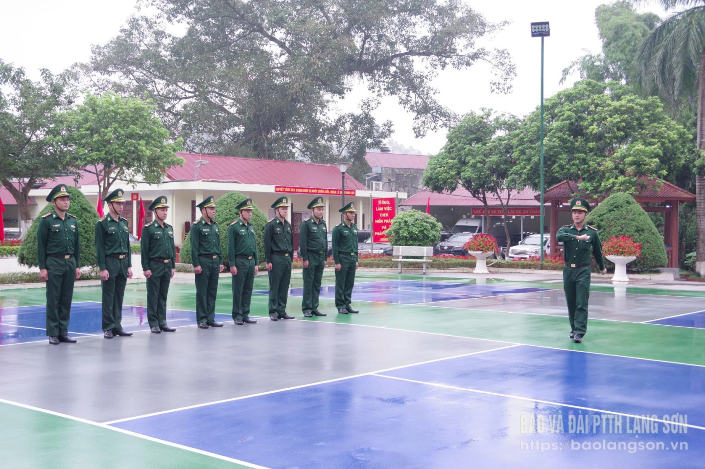 Đoàn công tác tổ chức kiểm tra điều lệnh đội ngũ tại Đồn Biên phòng Cửa khẩu Quốc tế Hữu Nghị