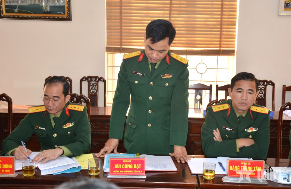 Kiểm tra các văn kiện liên quan đến công tác quốc phòng, quân sự tại Phòng Chính trị, Bộ CHQS tỉnh Nghệ An.