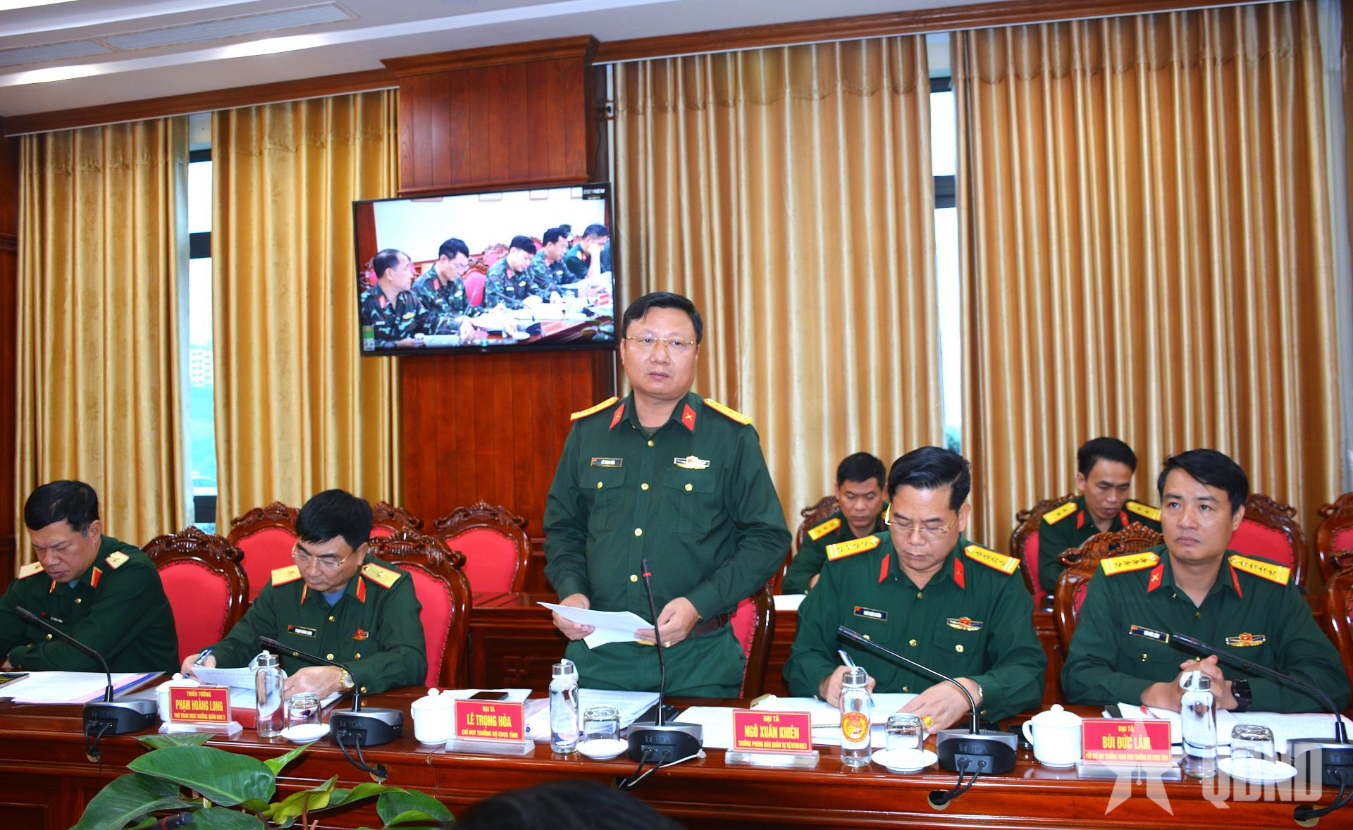 Đại tá Lê Trọng Hòa, Chỉ huy trưởng Bộ CHQS tỉnh Quảng Ninh phát biểu tại buổi làm việc.