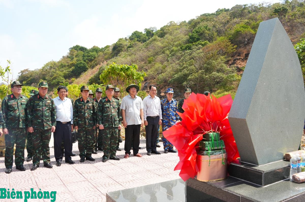 Đoàn công tác dâng hương tưởng nhớ các Anh hùng, liệt sĩ khởi nghĩa Hòn Khoai. Ảnh: Hoàng Tá