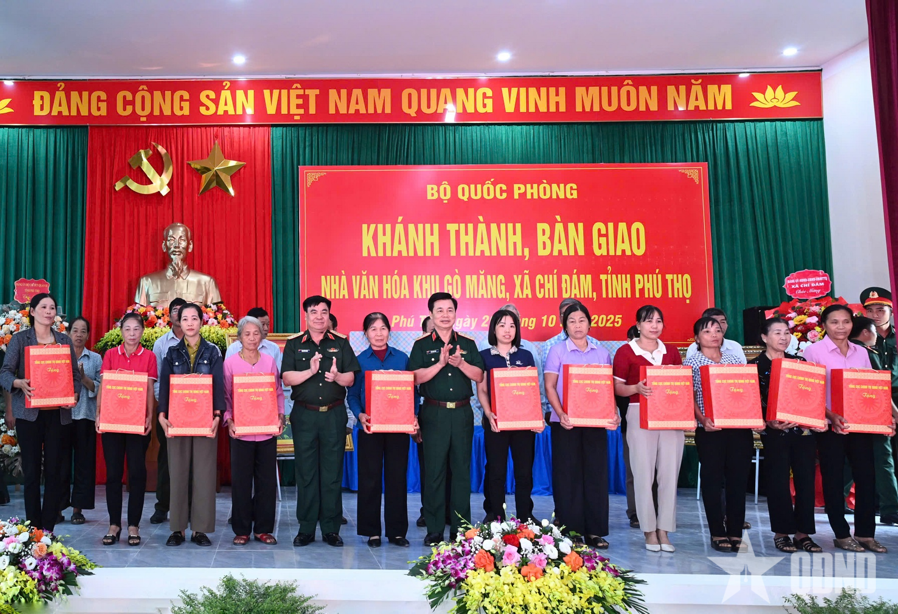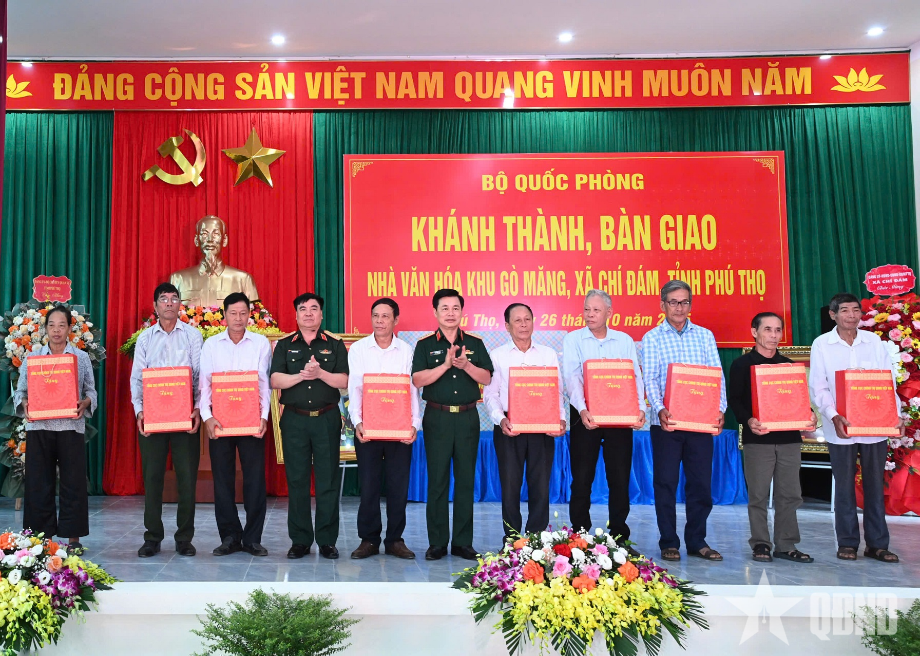 Lãnh đạo Tổng cục Chính trị Quân đội nhân dân Việt Nam và Quân khu 2 trao quà tặng phụ nữ hoàn cảnh khó khăn khu Gò Măng, xã Chí Đám (Phú Thọ).