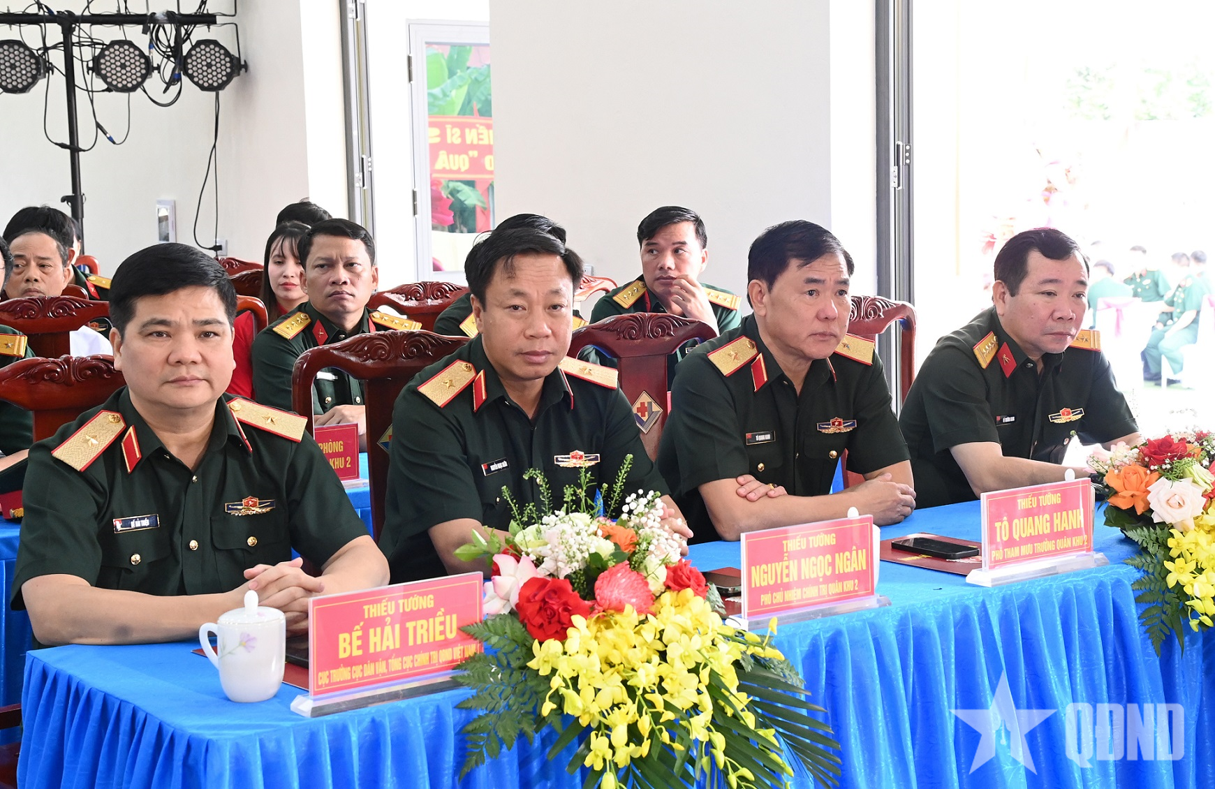 Thiếu tướng Bế Hải Triều, Cục trưởng Cục Dân vận; Thiếu tướng Nguyễn Ngọc Ngân, Phó chủ nhiệm Chính trị Quân khu 2; Thiếu tướng Tô Quang Hanh, Phó tham mưu trưởng Quân khu 2 và các đại biểu tại buổi lễ.