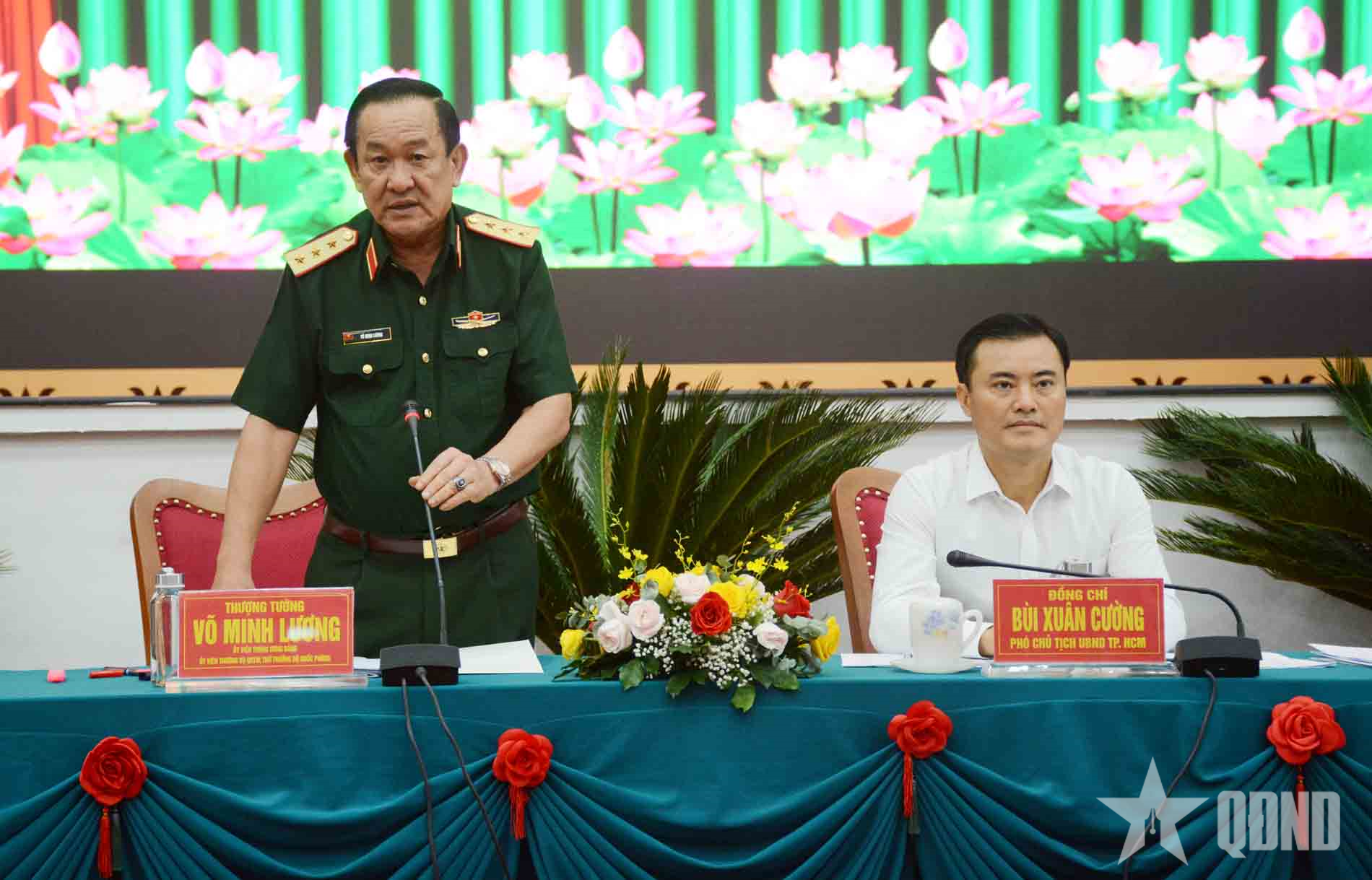 Phát biểu chỉ đạo, Thượng tướng Võ Minh Lương yêu cầu các cơ quan, đơn vị thuộc Bộ Quốc phòng phối hợp chặt chẽ với các cơ quan, đơn vị và địa phương của TP Hồ Chí Minh, tập trung trao đổi giải quyết tốt những khó khăn, vướng mắc, nhằm đẩy nhanh tiến độ thực hiện các chủ trương, nội dung, dự án theo đúng thẩm quyền và quy định pháp luật.