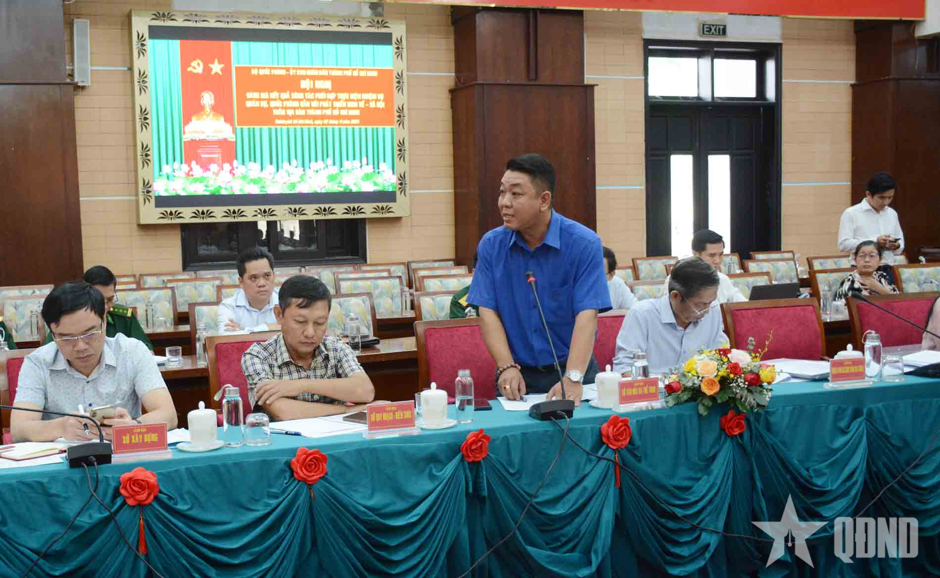 Tại hội nghị, Thiếu tướng Lê Văn Dũng, Phó chánh Văn phòng Bộ Quốc phòng, thay mặt đoàn công tác, trình bày báo cáo chi tiết kết quả phối hợp giữa Bộ Quốc phòng và TP Hồ Chí Minh thời gian qua.