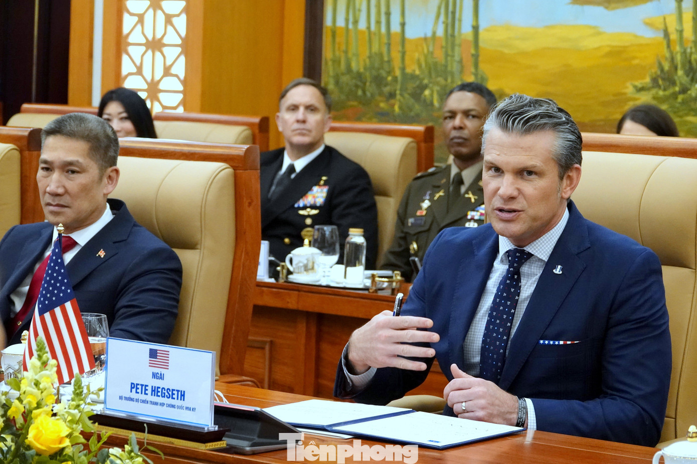 Phát biểu tại hội đàm, Đại tướng Phan Văn Giang nhấn mạnh, chuyến thăm Việt Nam lần này của Bộ trưởng Bộ Chiến tranh Mỹ có ý nghĩa quan trọng, diễn ra trong thời điểm hai nước kỷ niệm 30 năm thiết lập quan hệ ngoại giao (1995-2025), góp phần thúc đẩy hơn nữa quan hệ Đối tác Chiến lược toàn diện vì hòa bình, hợp tác và phát triển bền vững Việt Nam - Mỹ, cũng như hợp tác quốc phòng song phương hai nước.