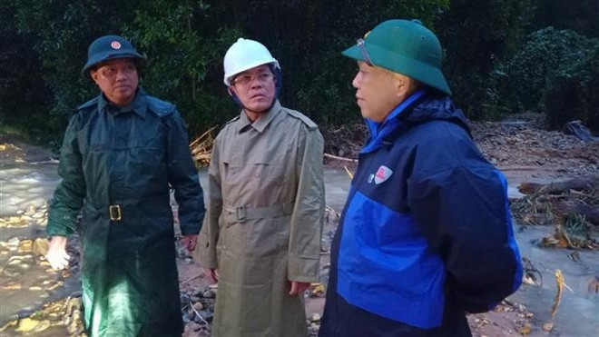 Phó Chủ tịch UBND TP. Đà Nẵng Trần Nam Hưng thị sát các điểm sạt lở núi ở xã Trà My. (Ảnh: Đoàn Hũu Trung/TTXVN)