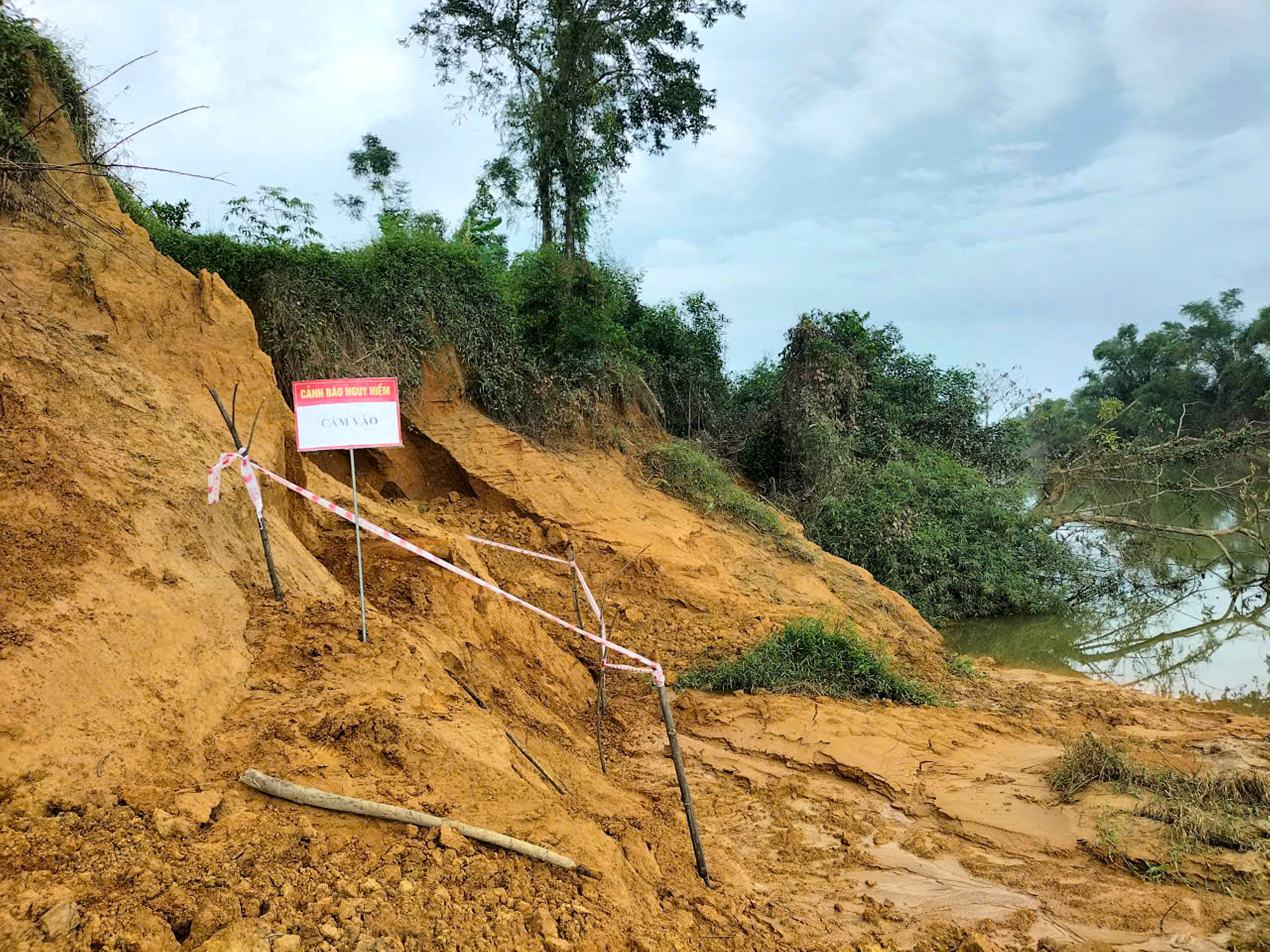 Khu vực bờ sông Ngàn Sâu sạt lở để lộ ra quả bom