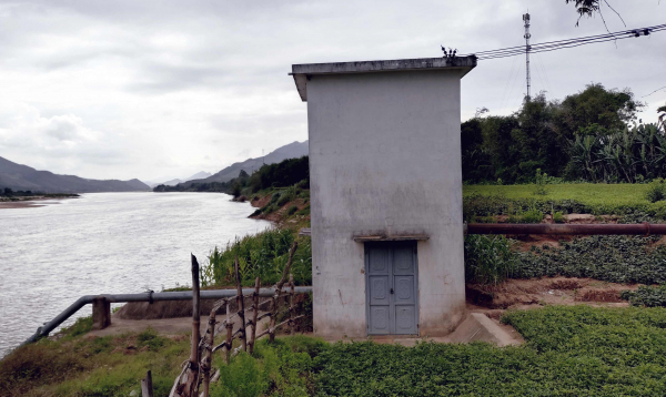 Một trạm bơm nước nằm sát mép sông do bờ sông Vu Gia ngày càng sạt lở nghiêm trọng.