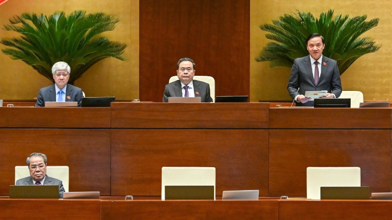 Chủ tịch Quốc hội Trần Thanh Mẫn và các Phó Chủ tịch Quốc hội chủ trì, điều hành phiên họp. (Ảnh: THỦY NGUYÊN)